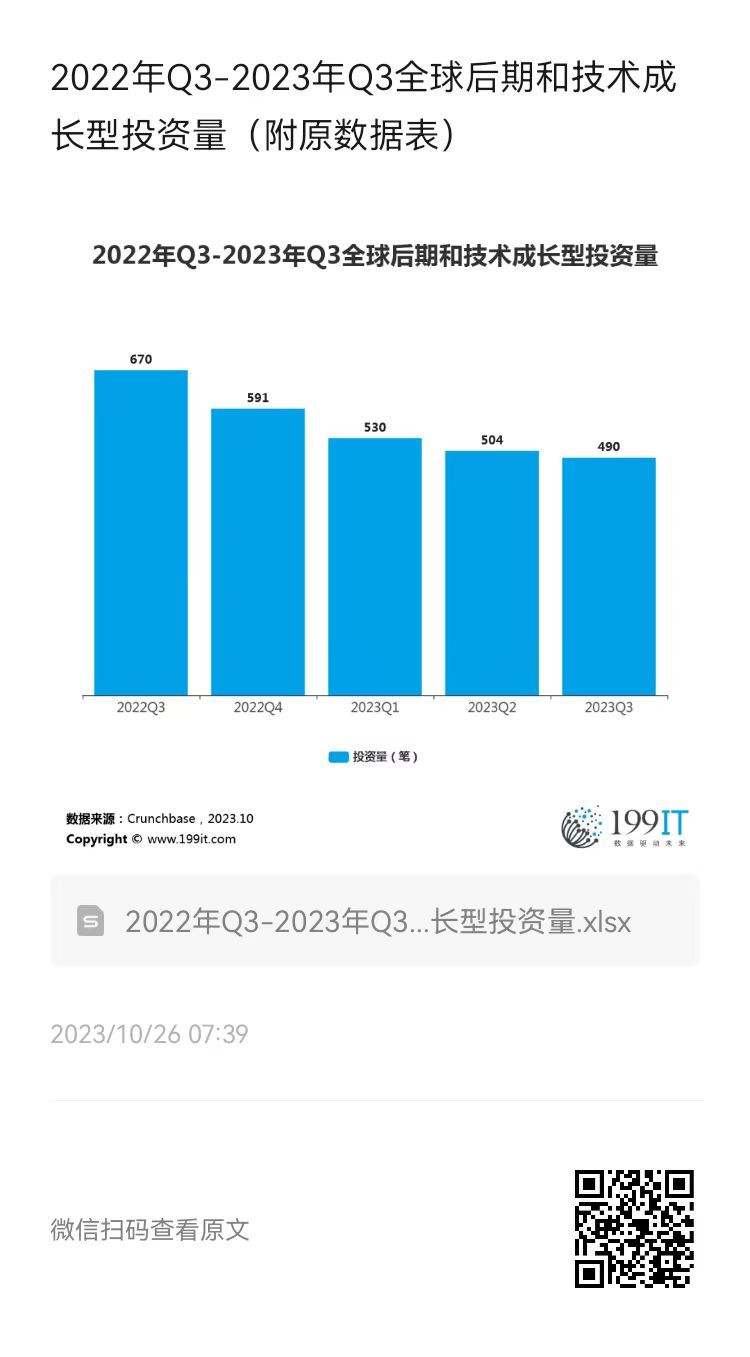 - 2022年Q3-2023年Q3全球后期和技术成长型投资额(附原数据表)