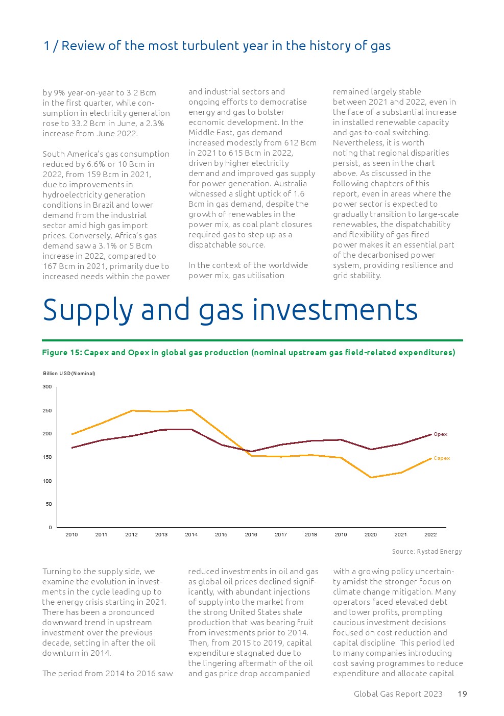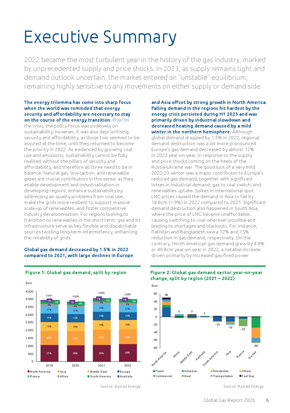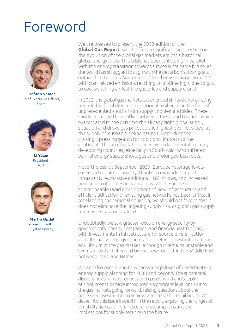 IGU发布了“2023年全球天然气报告”。2022年是天然气行业历史上最动荡的一年,出现了前所未有的供应和价格冲击。2023年,由于供应仍然紧张,需求前景不确定,市场进入了“不稳定”的平衡状态,对供需方面的任何变动都保持高度敏感。