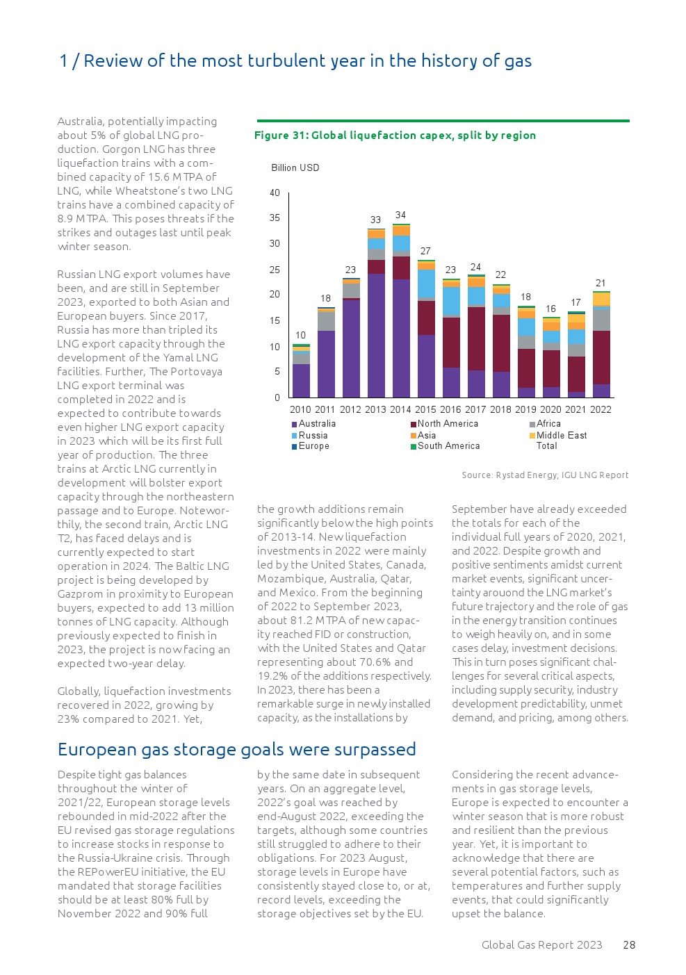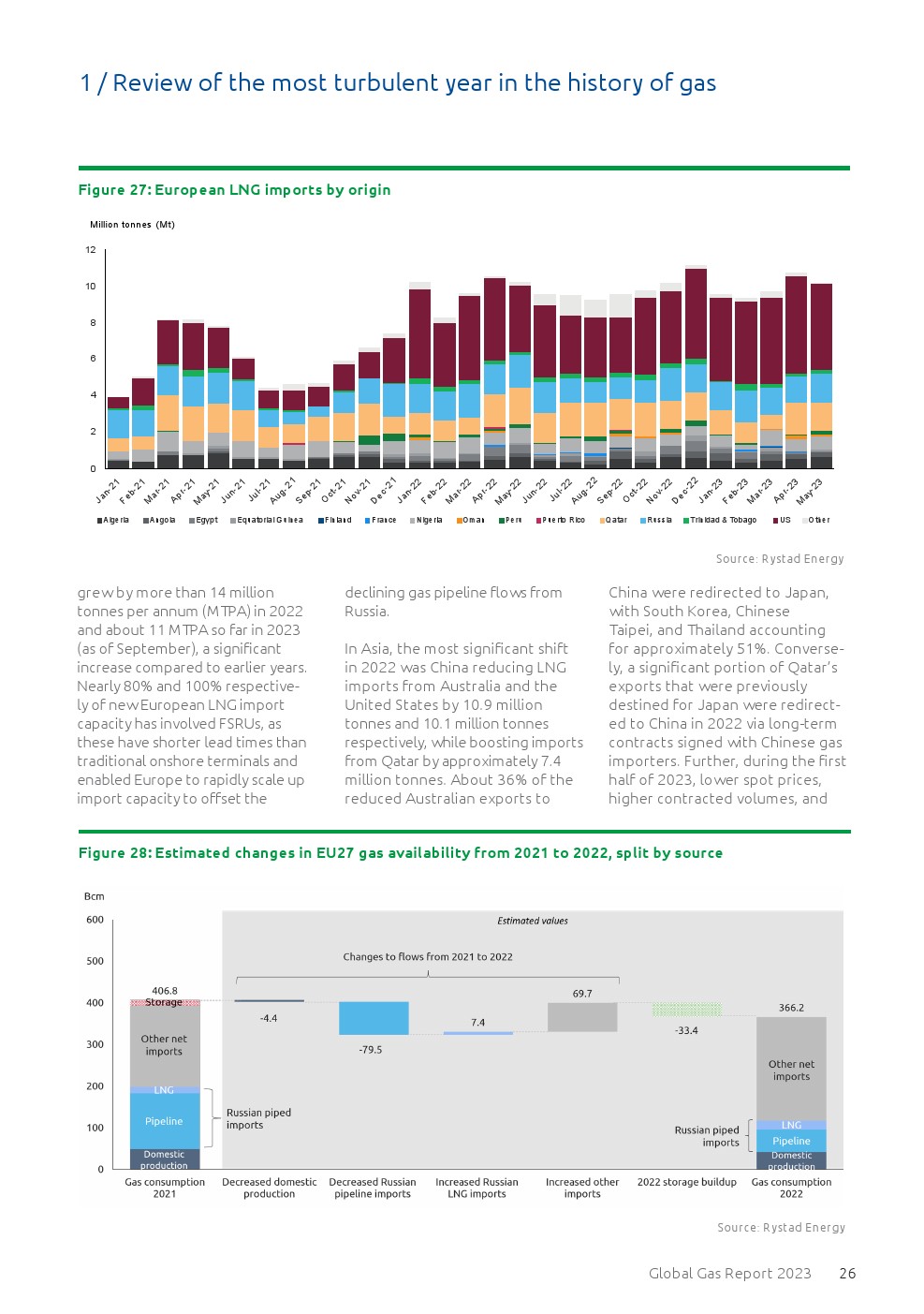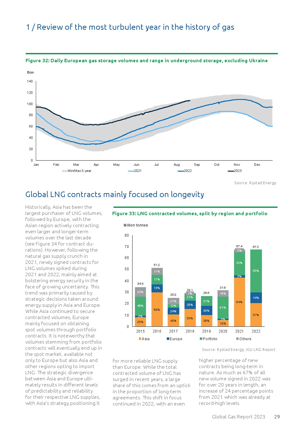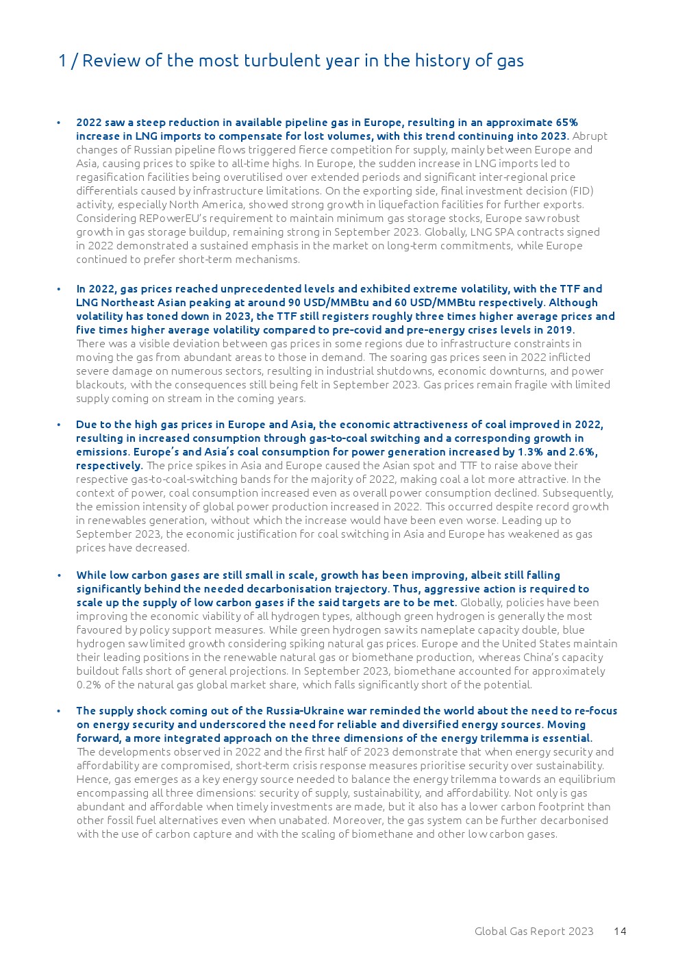 IGU发布了“2023年全球天然气报告”。2022年是天然气行业历史上最动荡的一年,出现了前所未有的供应和价格冲击。2023年,由于供应仍然紧张,需求前景不确定,市场进入了“不稳定”的平衡状态,对供需方面的任何变动都保持高度敏感。