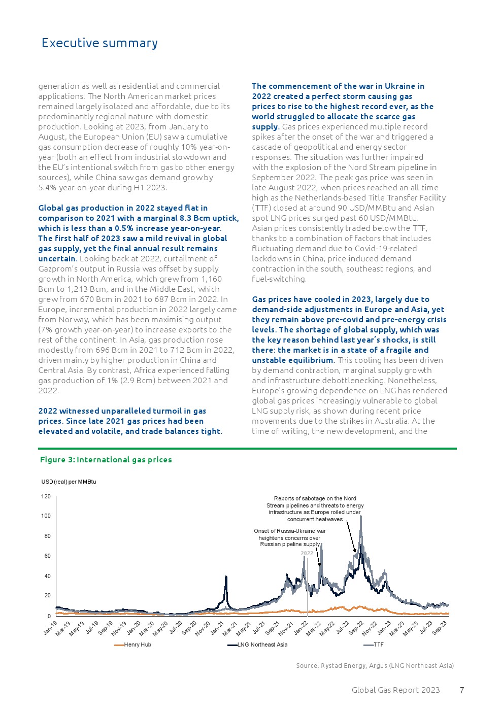 天然气价格在2023年有所下降,主要是由于欧洲和亚洲的需求调整,但仍高于疫情前和能源危机前的水平。