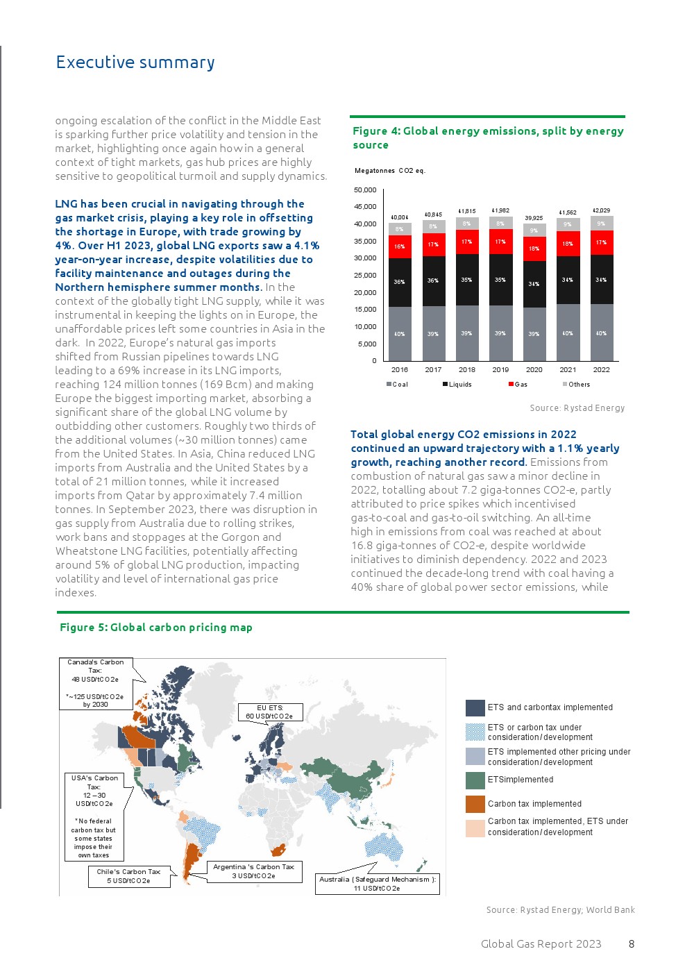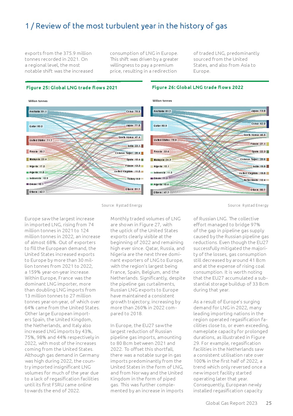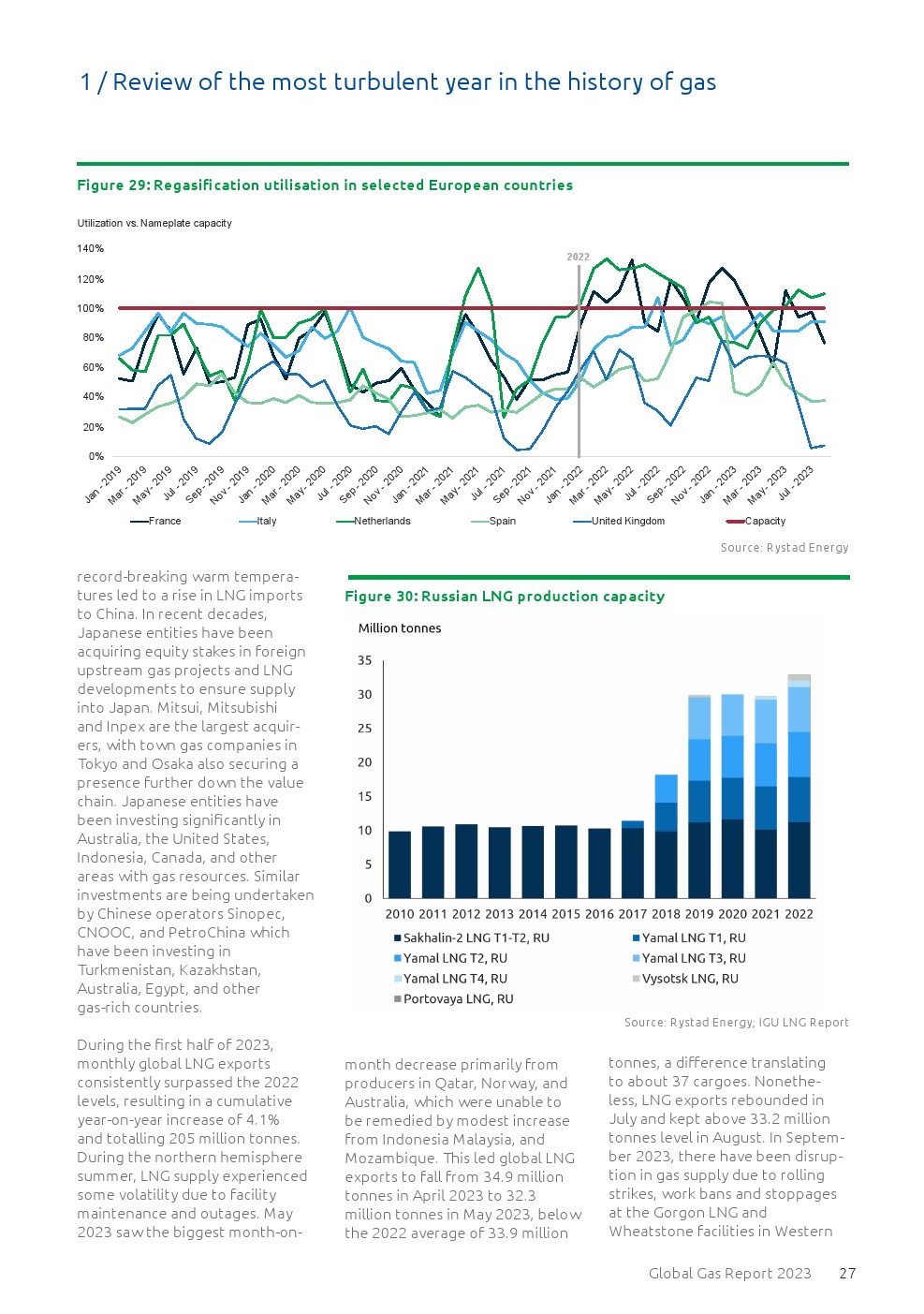 液化天然气在应对天然气市场危机方面发挥了至关重要的作用,在抵消欧洲天然气短缺方面发挥了关键作用,贸易增长了4%。尽管北半球夏季期间设施维护和中断造成了波动,但在2023年上半年,全球液化天然气出口同比增长4.1%。