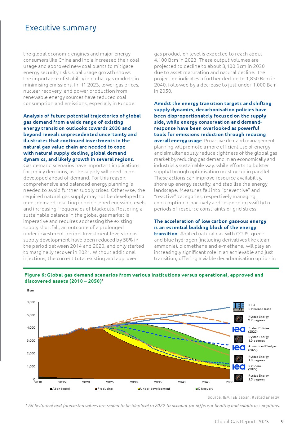 从2030年及以后的广泛能源转型前景出发,对未来全球天然气需求的潜在轨迹进行分析,揭示了前所未有的不确定性,并表明需要继续投资天然气价值链,以应对自然供应下降、全球需求动态以及一些地区的需求增长。