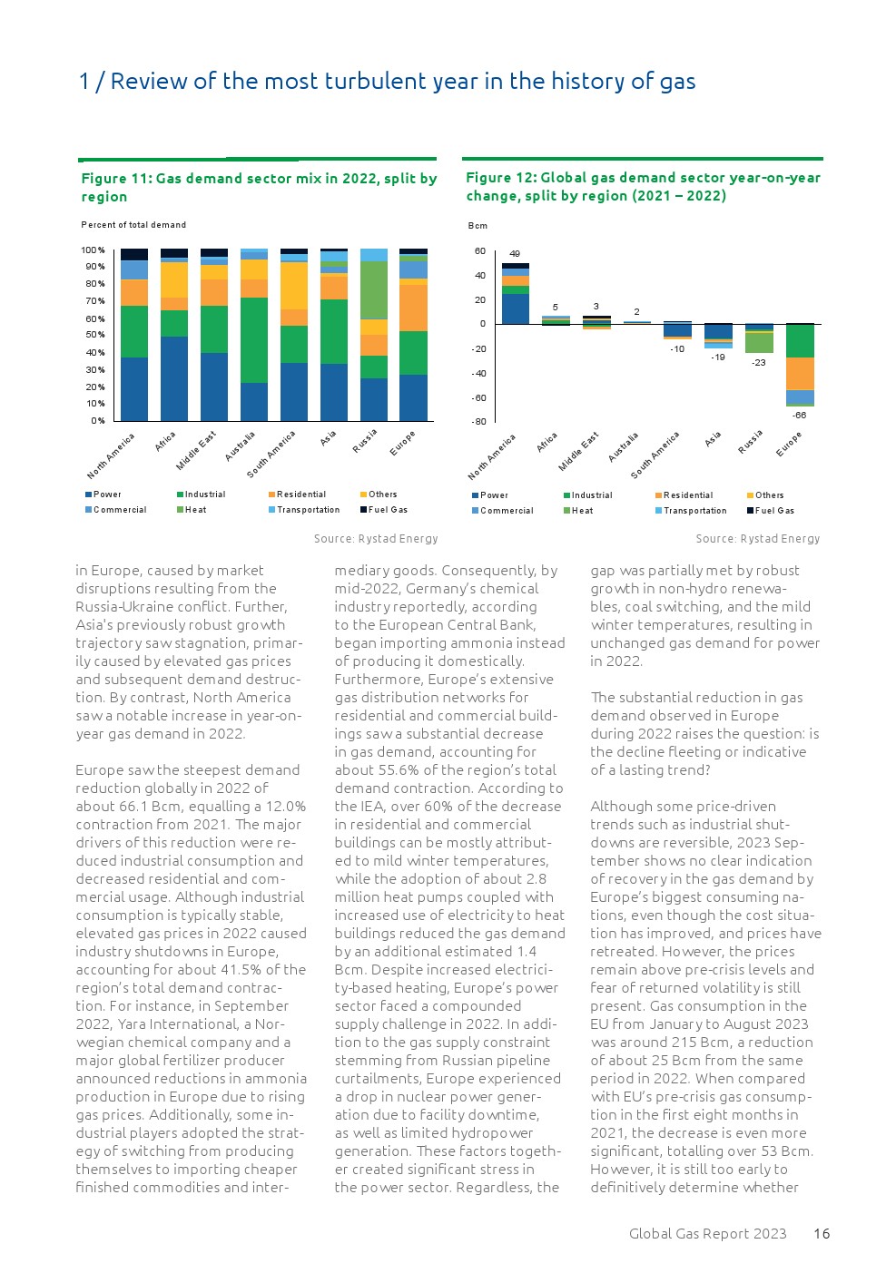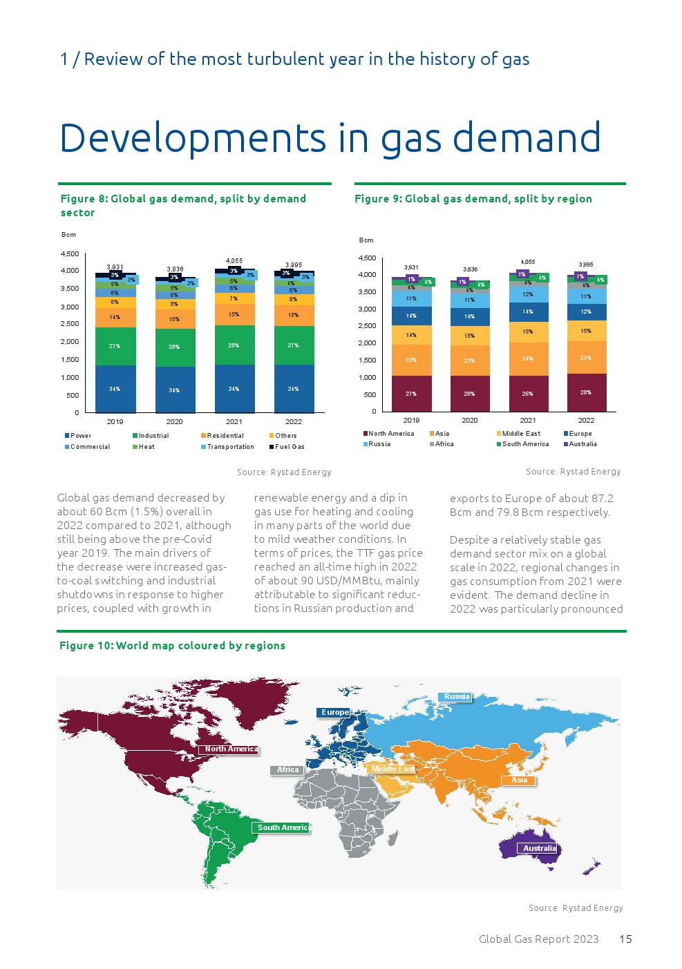 与2021年相比,2022年全球天然气需求下降1.5%,欧洲和亚洲的需求大幅下降被北美的强劲增长所抵消。