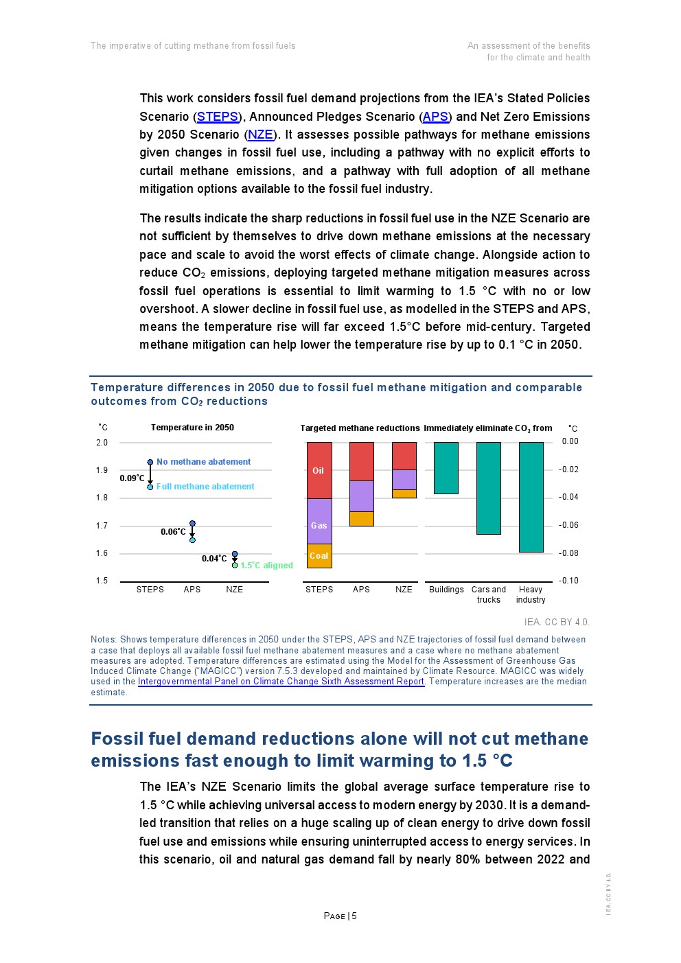 即使在NZE情景中,仅减少化石燃料的使用也无法实现足够深度的甲烷排放削减,以达到将升温限制在1.5°C的水平。此外,采取有针对性的行动解决化石燃料生产和使用过程中的甲烷排放问题,对于限制跨越不可逆转的气候临界点的风险至关重要。