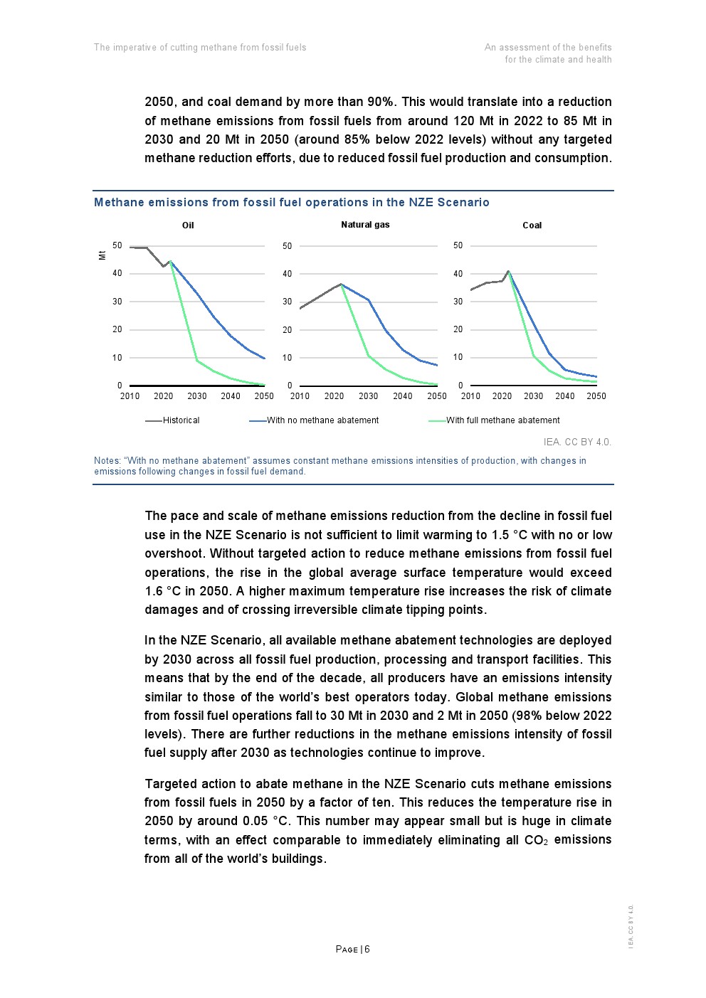 通过有针对性的减排措施迅速减少化石燃料产生的甲烷及二氧化碳排放,对于实现全球气候目标至关重要。如果不对甲烷及二氧化碳采取有针对性的行动,即使化石燃料的使用大幅减少,到2050年,全球平均地表温度的增幅也可能超过1.6°C。