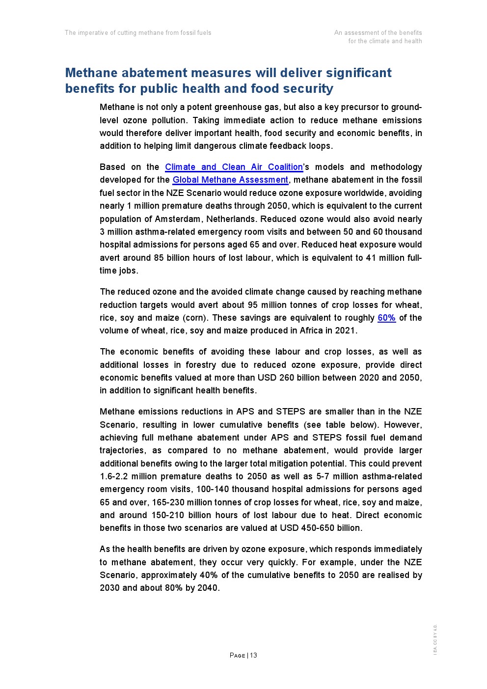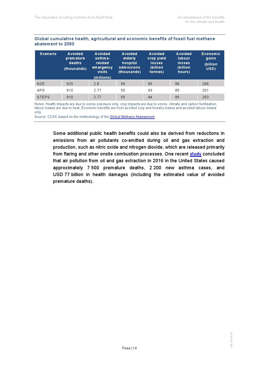 到2050年,化石燃料行业立即有针对性地减少甲烷排放,可以防止因臭氧暴露造成的近100万人过早死亡,防止因臭氧和气候变化造成的9000万吨作物损失,防止因高温暴露造成的约850亿小时的劳动损失,提供约2600亿美元的直接经济效益。