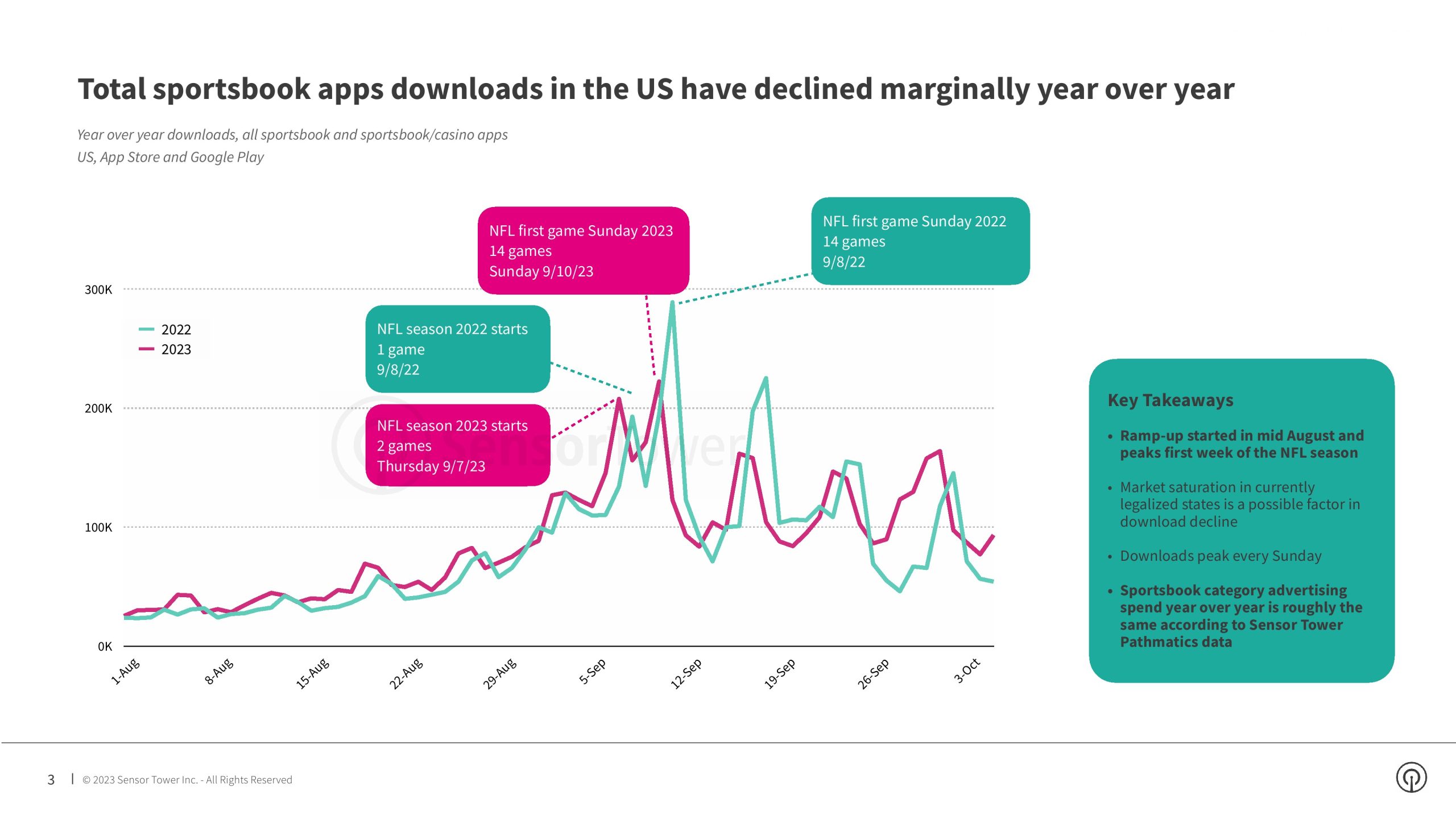 sportsbook应用下载量:尽管应用下载量与去年相比略有下降,但游戏还远未结束。需要找出市场饱和影响数字的原因和方式。