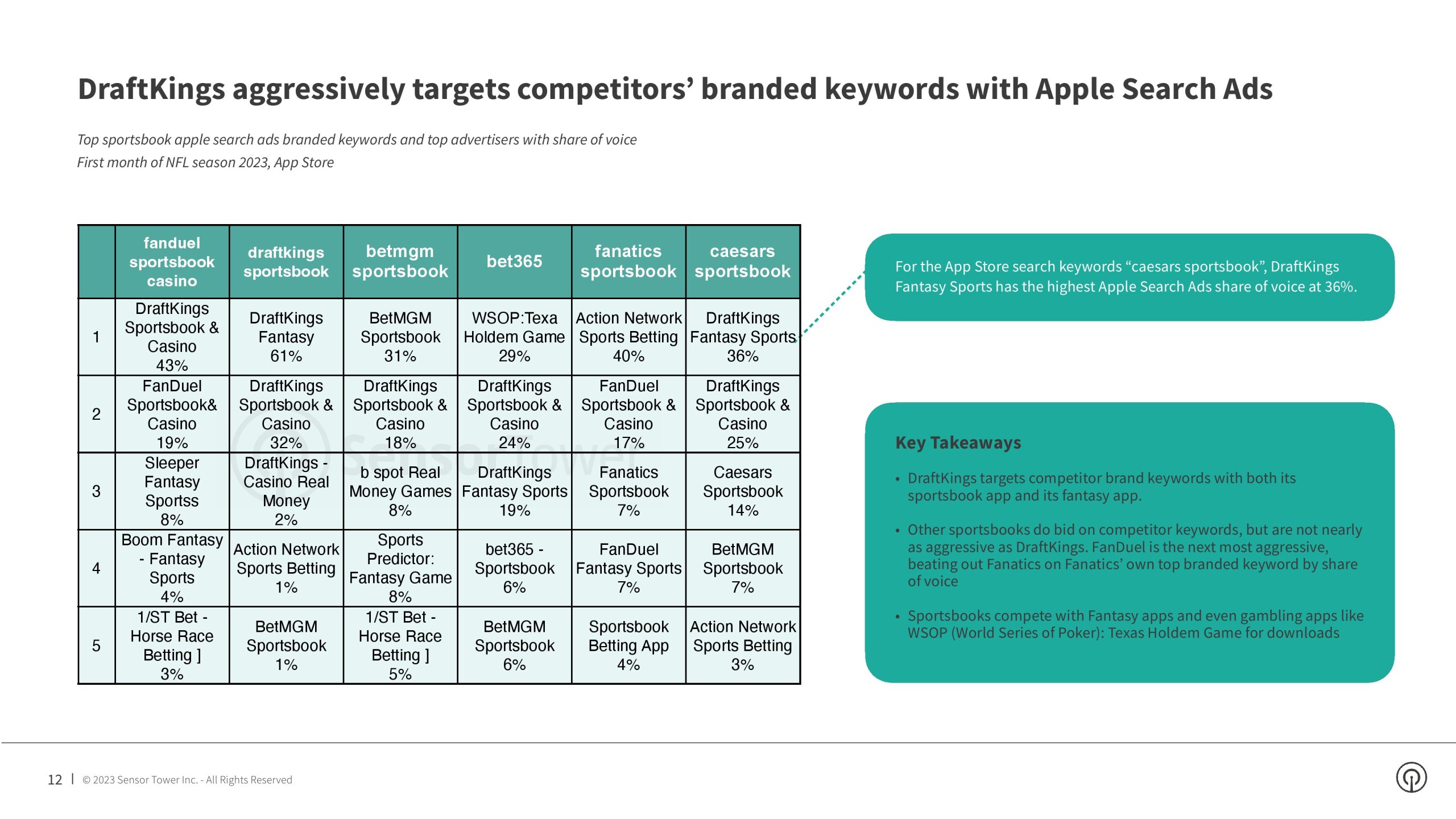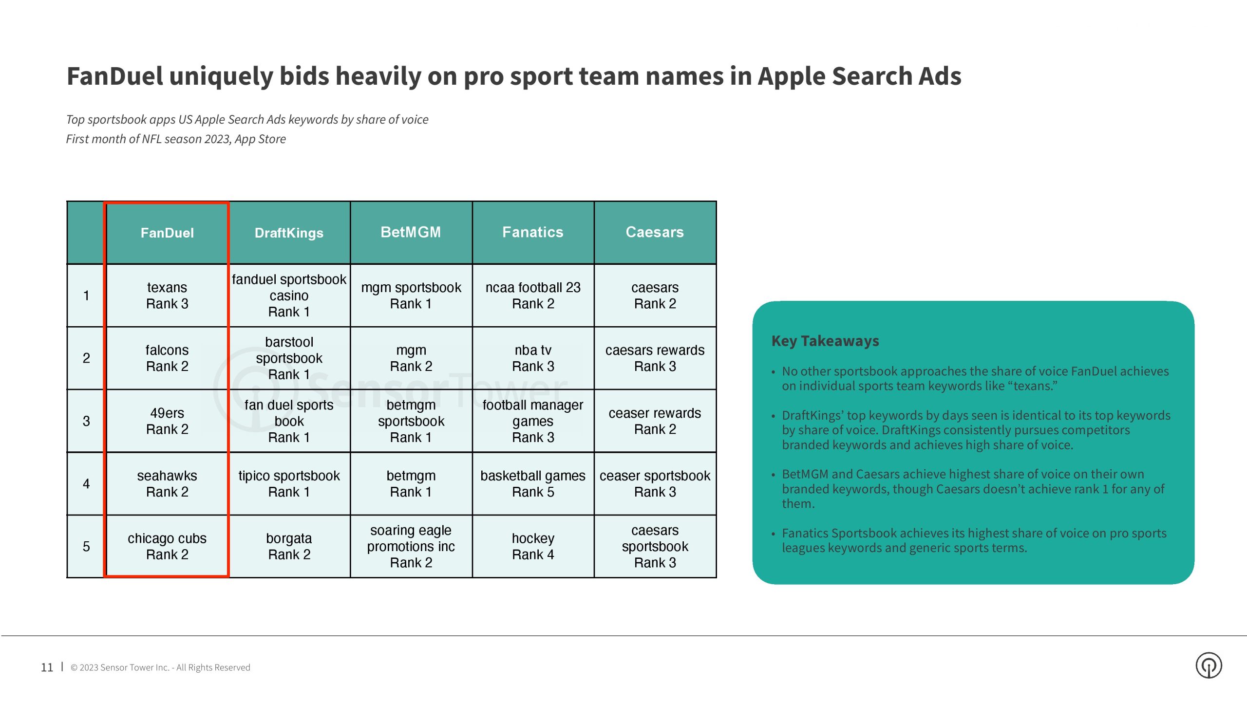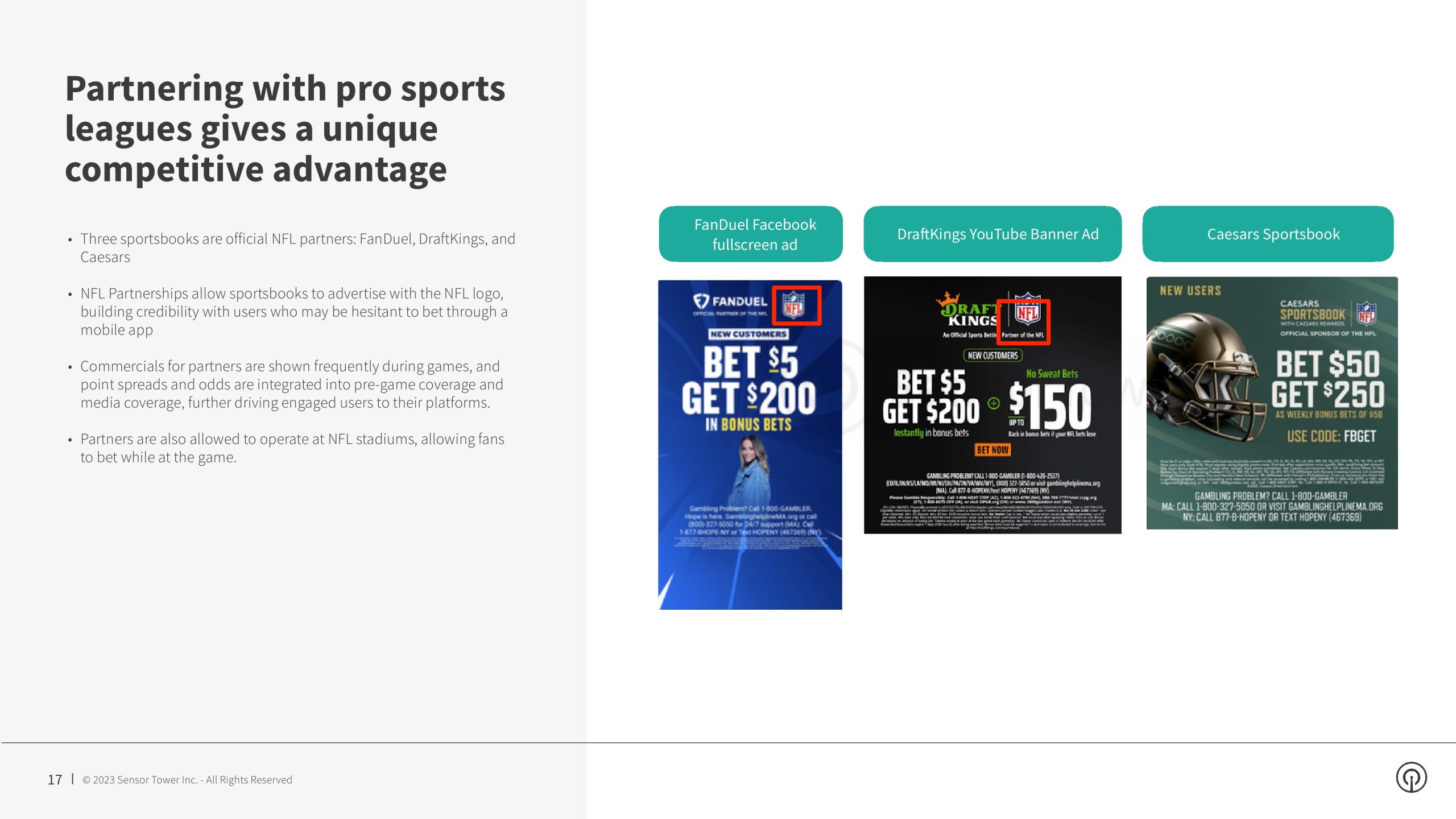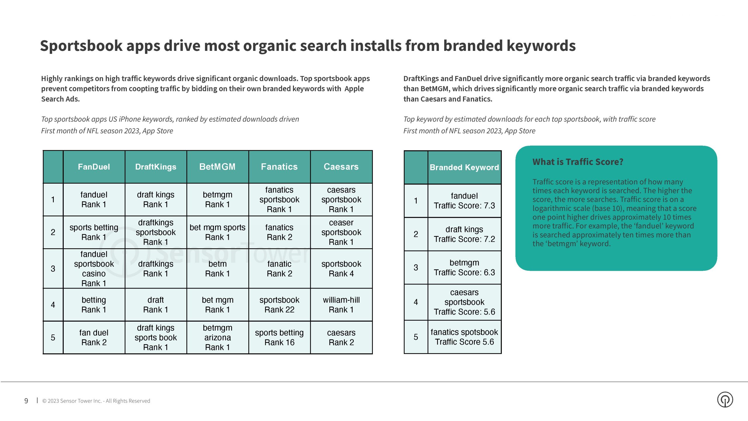 SensorTower在报告中分析了2023年NFL开赛如何推动体育博彩应用的表现,以及DraftKings和FanDuel等体育博彩与去年相比的竞争情况。