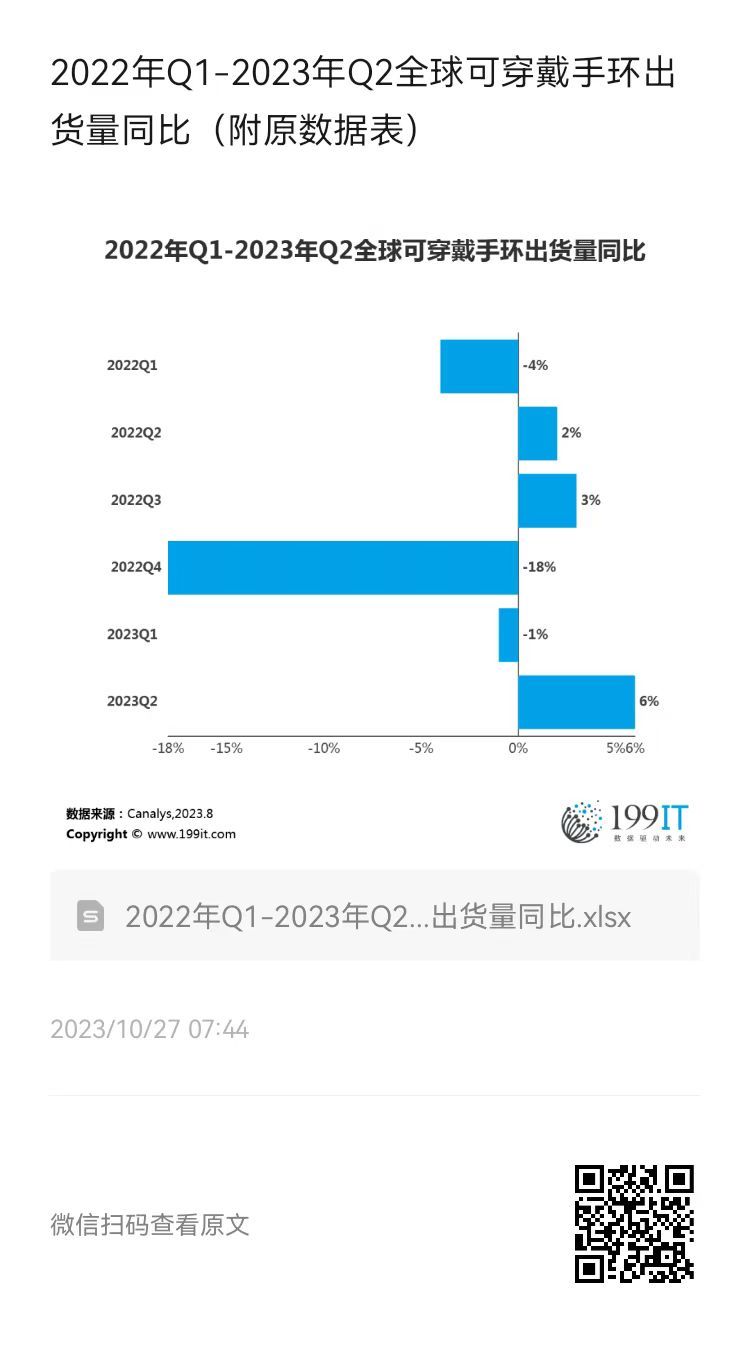 - 2023年Q1-2024年Q2全球可穿戴手环出货量同比(附原数据表)