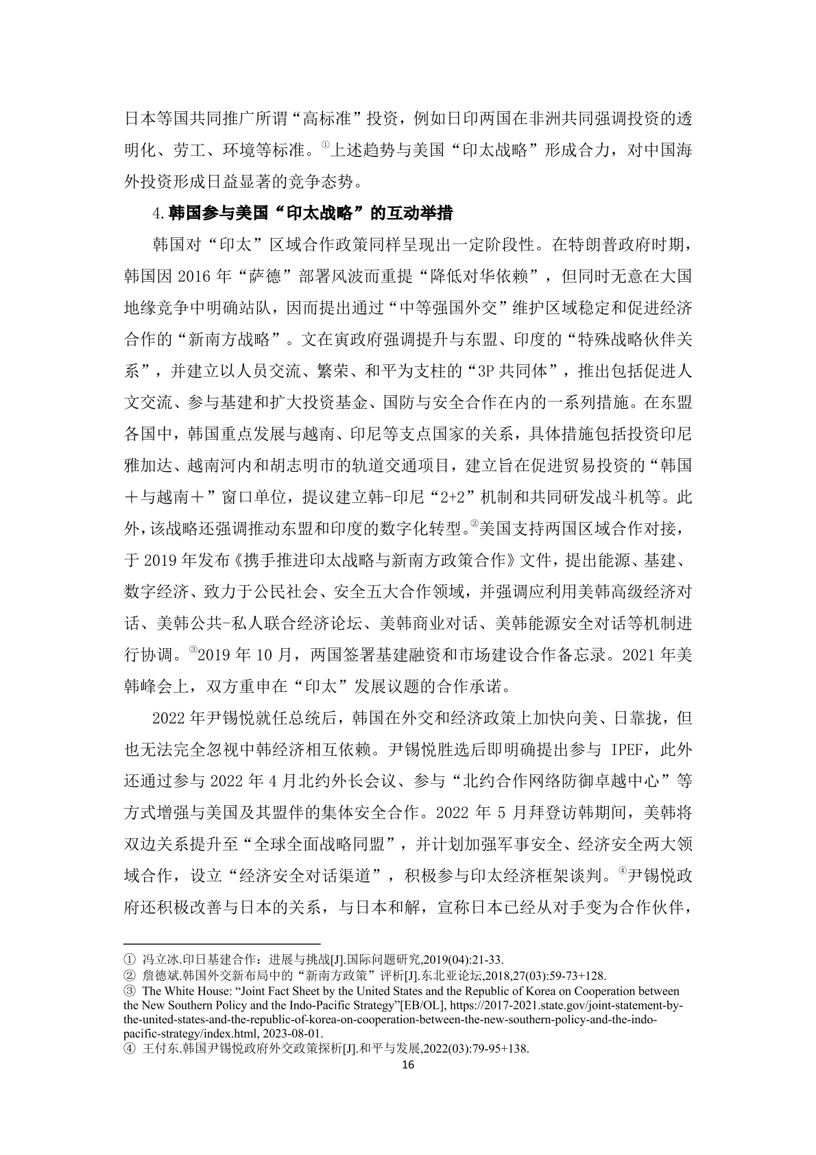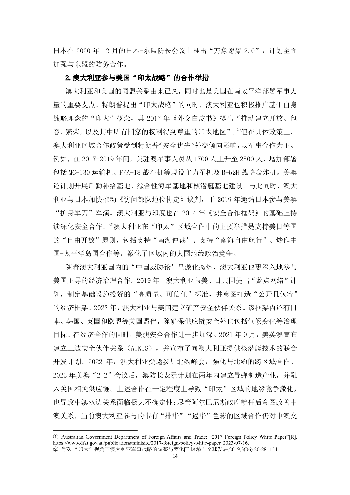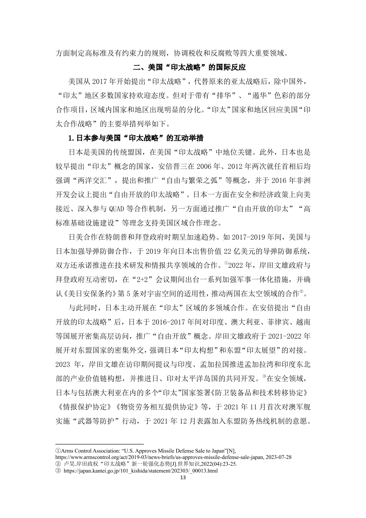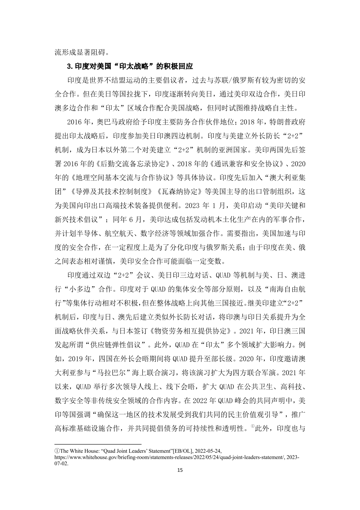 6.中国可对 IPEF 持开放态度,推动其向自由与开放的方向发展,反对搞封 闭性和排他性的地区政治经济集团,支持以《东盟印太展望》为合作框架,尽快 表态参与印太经济框架的建构与谈判进程。