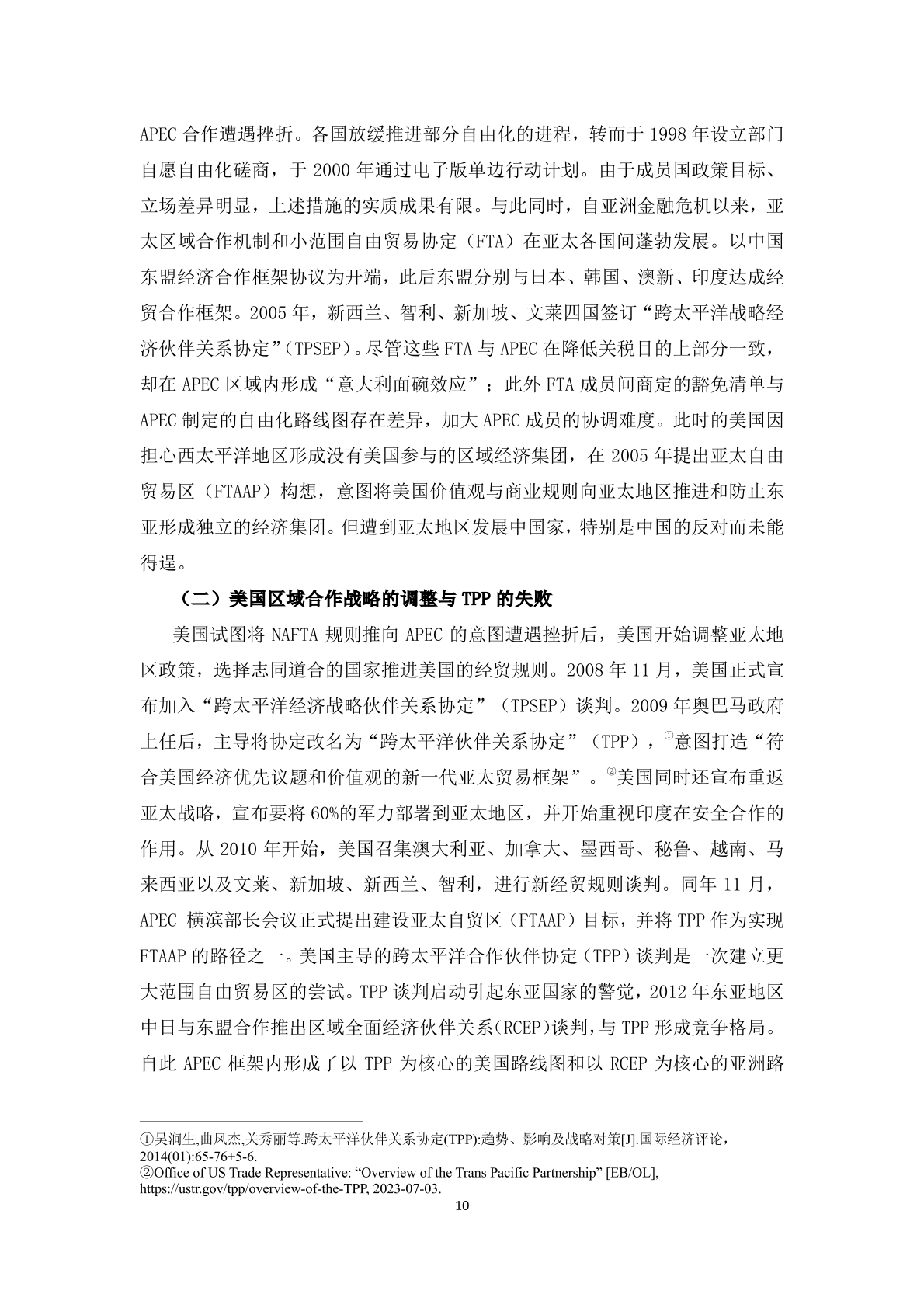 3.尽快启动和完成中国加入 CPTPP 和 DEPA 谈判进程。尽快组建 CPTPP 谈判 工作组,并将东盟国家和拉美国家作为加入 CPTPP 的谈判重点对象,争取日本和 墨西哥支持中国加入 CPTPP。推动以 DEPA 为基础展开谈判达成涵盖更多 APEC 成 员的亚太数字经济伙伴协议。