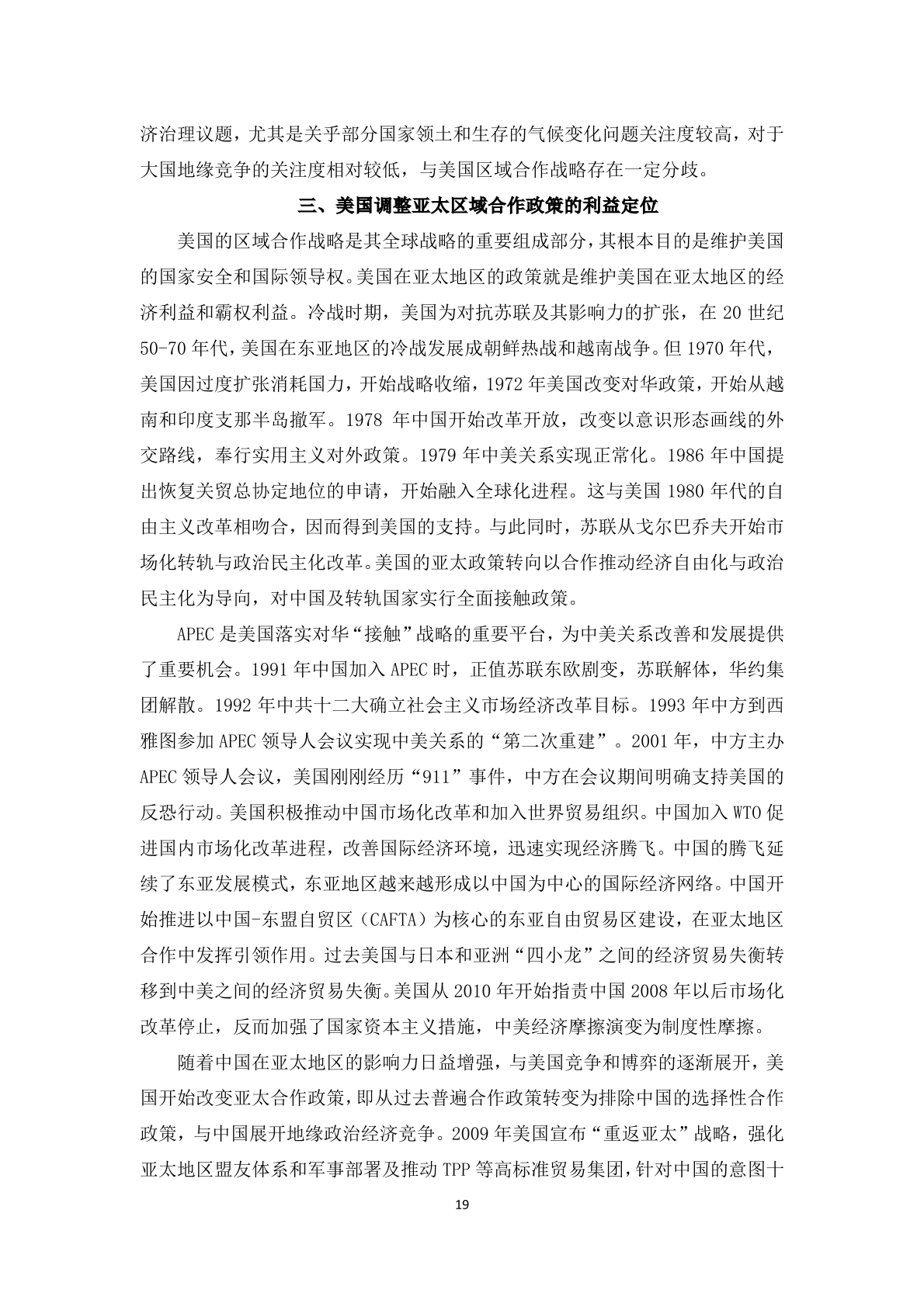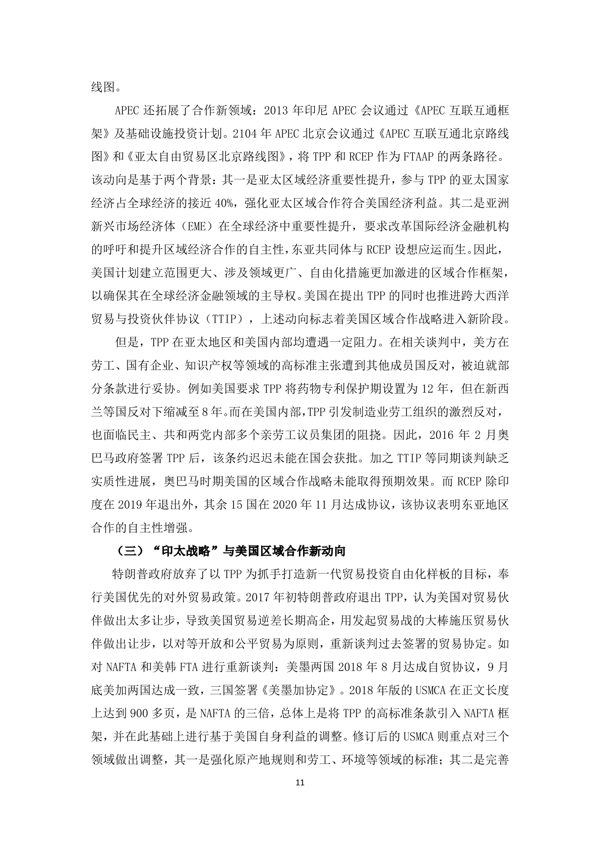 2.要重视 APEC 平台作用,增加中美 APEC 内的合作面,实现 APEC 扩员,邀 请印度、巴拿马及东盟成员柬埔寨、老挝和缅甸等国家参加,强化 APEC 贸易规 则谈判与制定功能,推动 FTAAP启动传统议题+新议题的谈判进程。