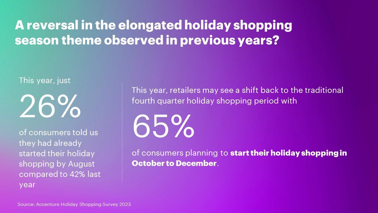 零售商本季可能看到的另一个有趣的变化是,消费者报告他们计划从10月到12月进行假日购物,漫长的假日购物季可能出现逆转。