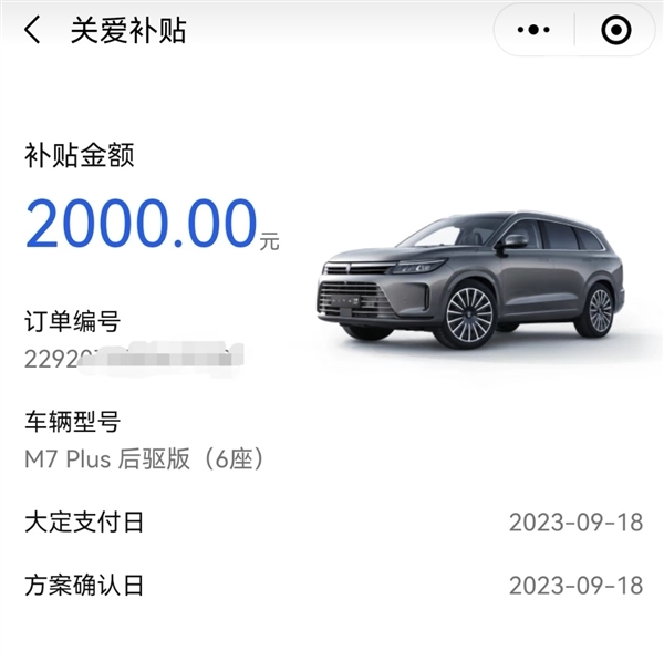 问界还推出了问界新M7的提车关爱计划,享200元/天,至高10000元提车超期补贴,有准车主已经获得了2000元。