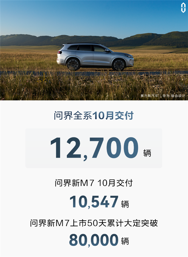 此外,问界全系10月大定量达到了57829辆,而据官方,上市50天以来,新M7累计大定量超过了8万台,创下新纪录。