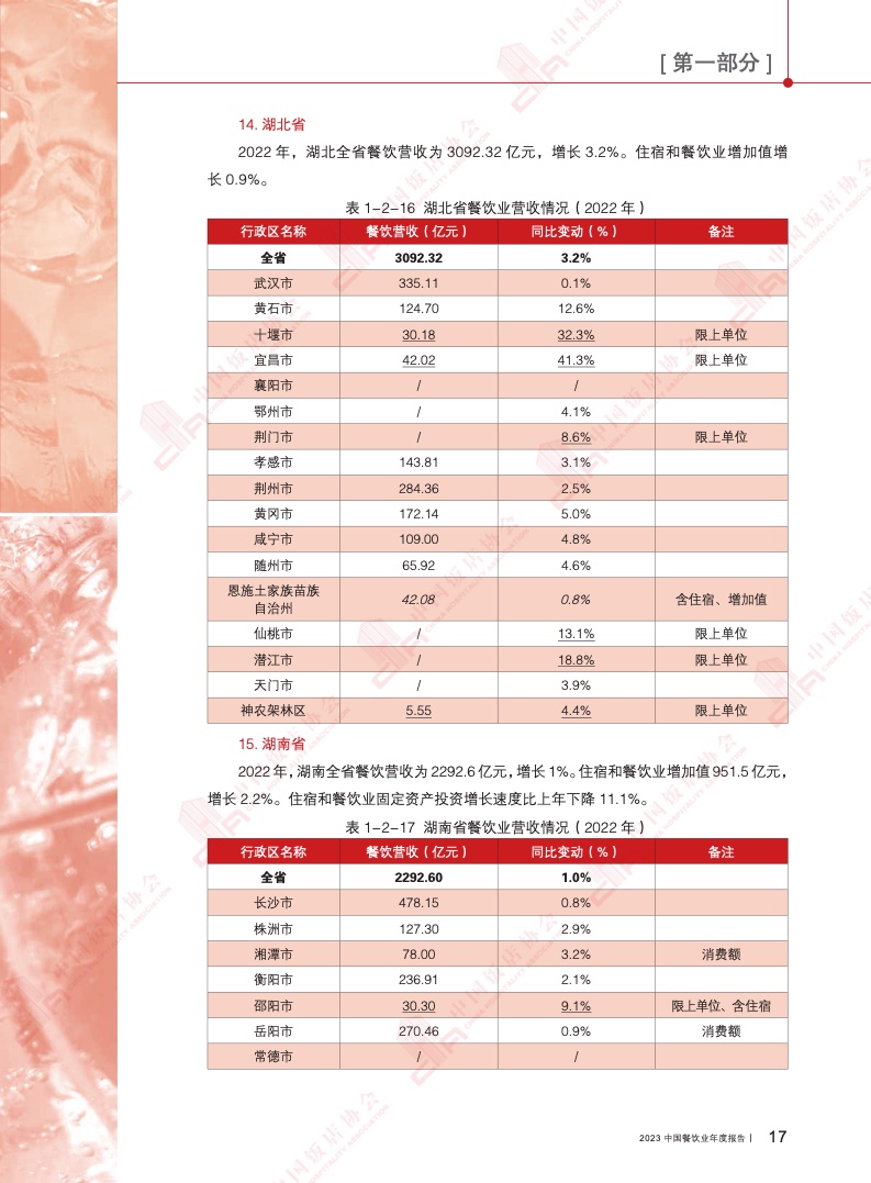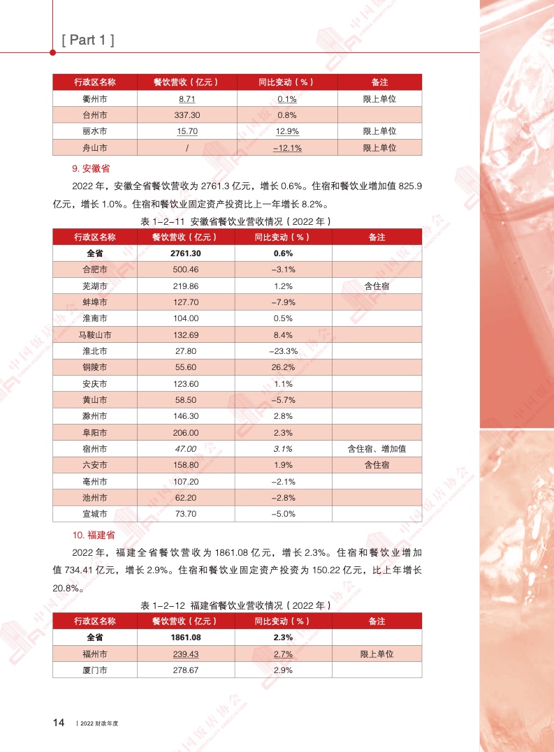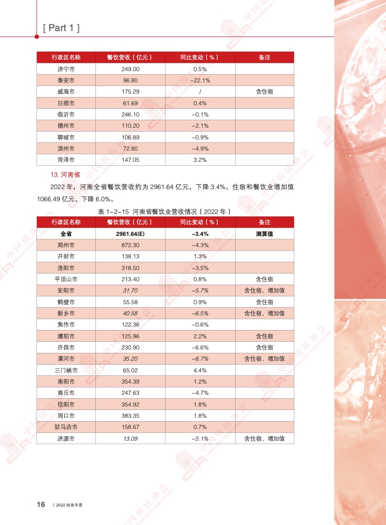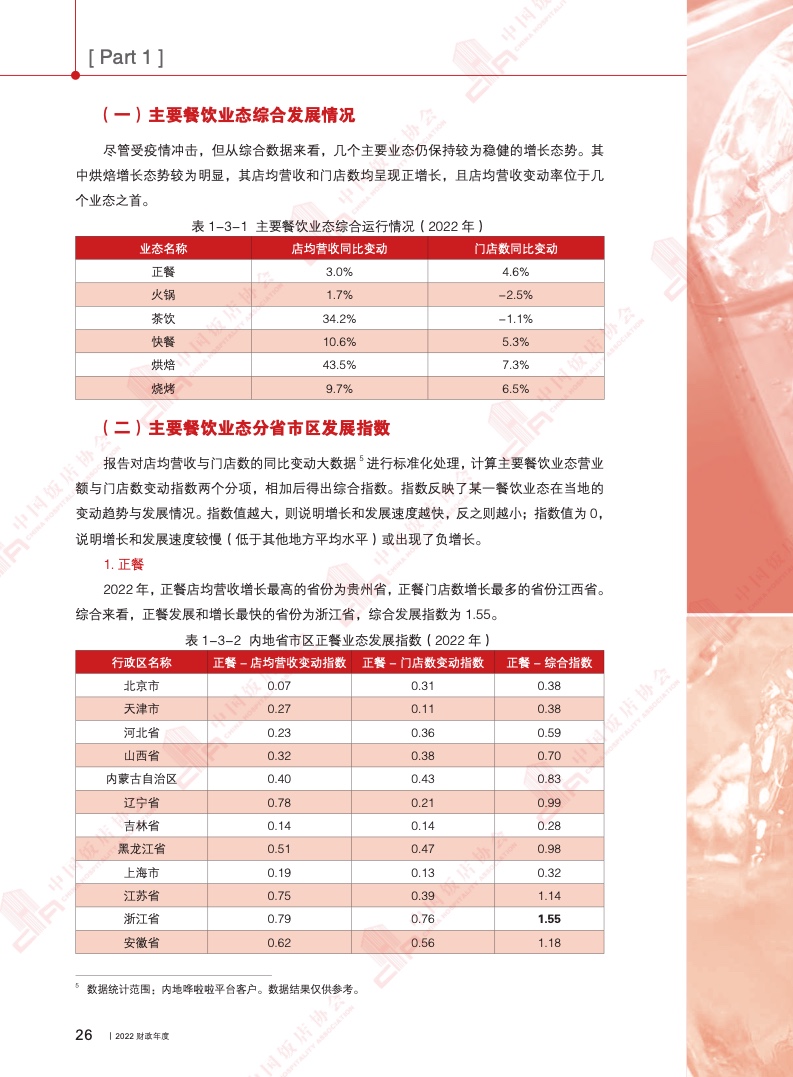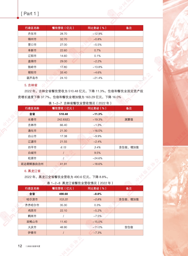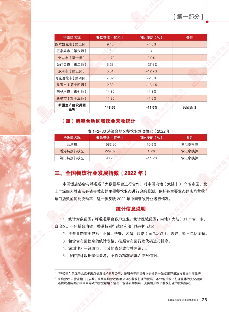 总体而言,受境外变异毒株持续输入影响,2022 年疫情多点频繁散发,餐饮行业波 动明显,市场受到较大冲击。全年行业收入同比增速仅在 1-2 月及 8 月呈现正值;3-5 月 受疫情影响出现明显低谷,此后呈缓慢回升趋势;而临近年底,疫情高发期来临,加上防 疫政策发生重大调整,新一轮大规模感染潮来袭,导致同比收入增速继续下滑。可以说, 2022 年全国餐饮行业营收情况,远要比前两年更为严峻。