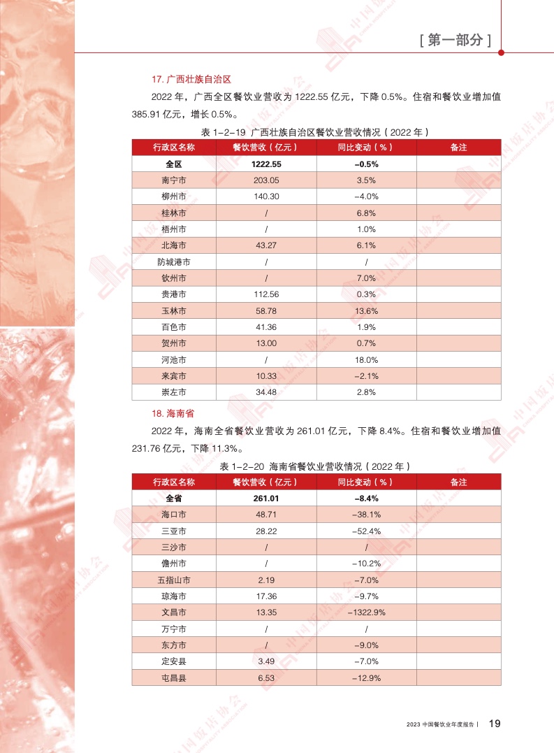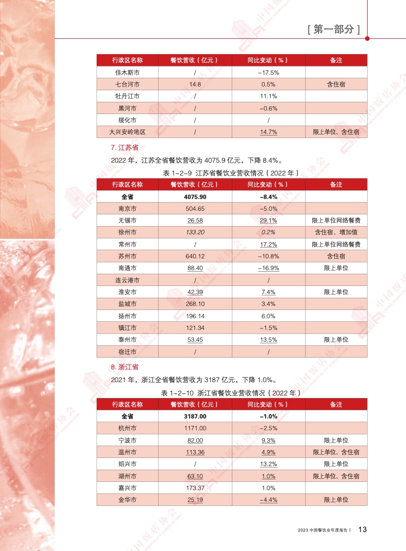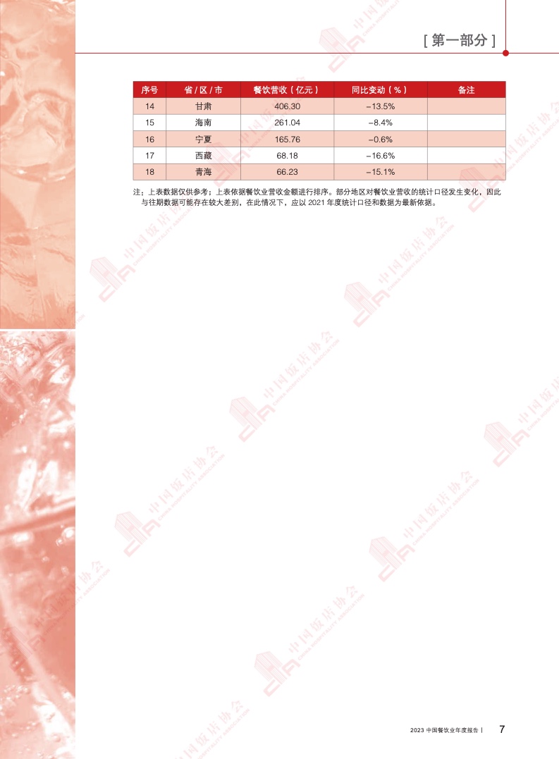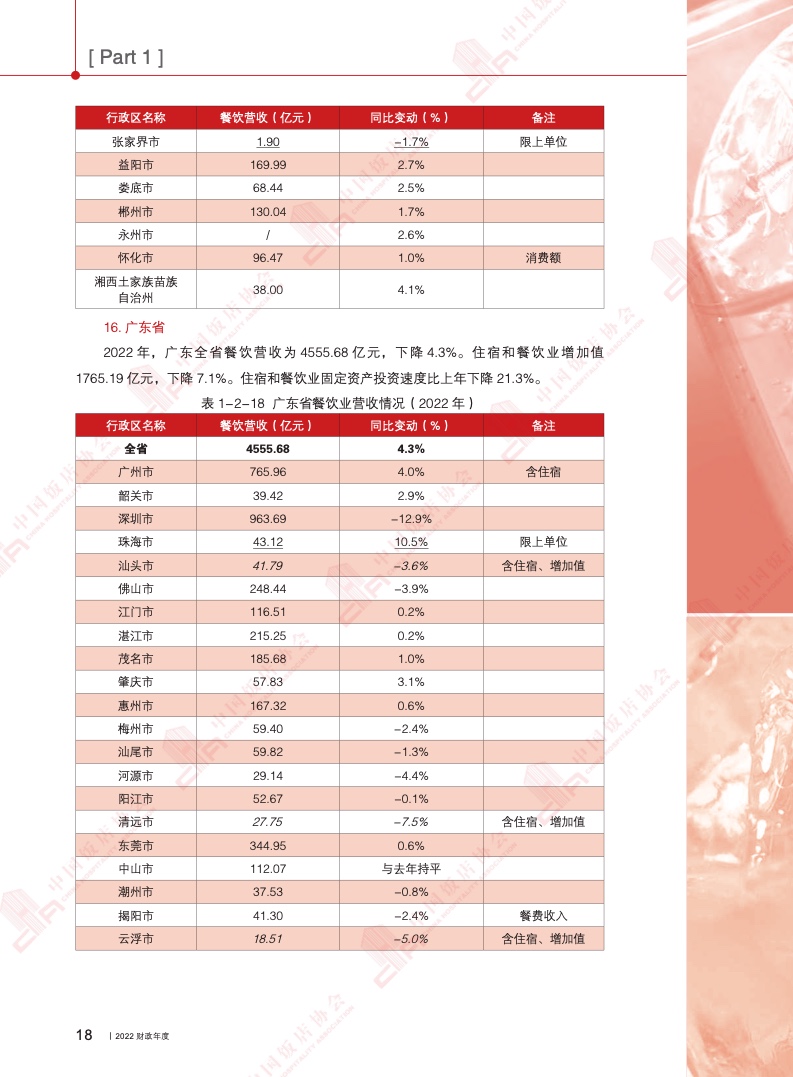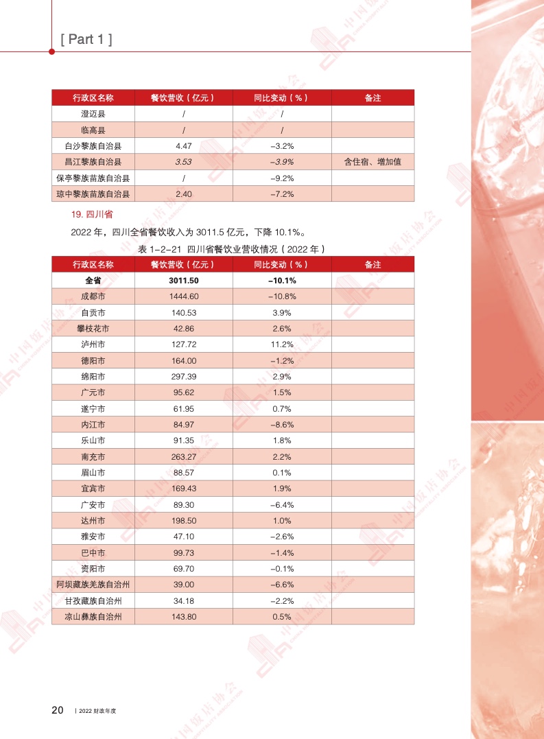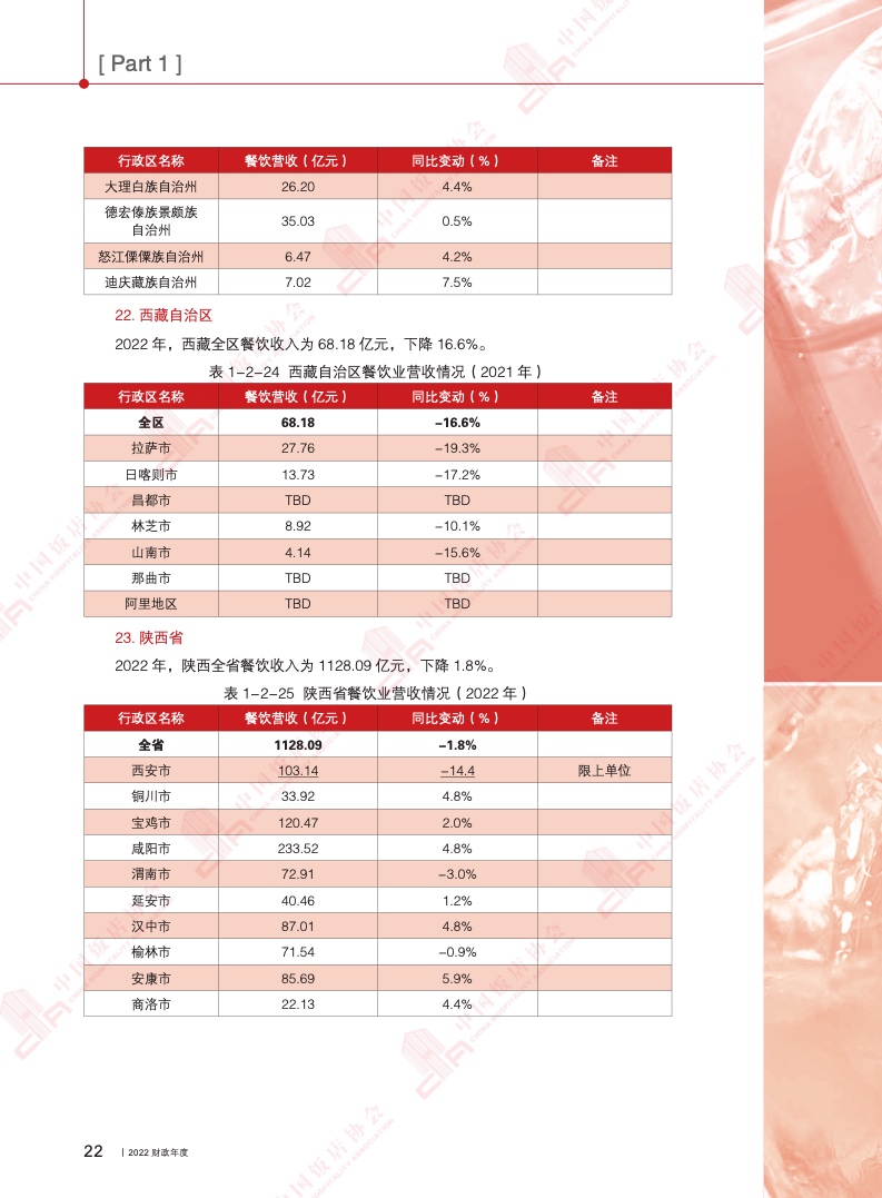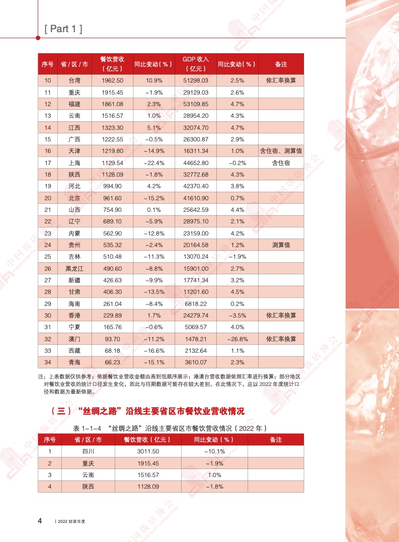 总体而言,受境外变异毒株持续输入影响,2022 年疫情多点频繁散发,餐饮行业波 动明显,市场受到较大冲击。全年行业收入同比增速仅在 1-2 月及 8 月呈现正值;3-5 月 受疫情影响出现明显低谷,此后呈缓慢回升趋势;而临近年底,疫情高发期来临,加上防 疫政策发生重大调整,新一轮大规模感染潮来袭,导致同比收入增速继续下滑。可以说, 2022 年全国餐饮行业营收情况,远要比前两年更为严峻。