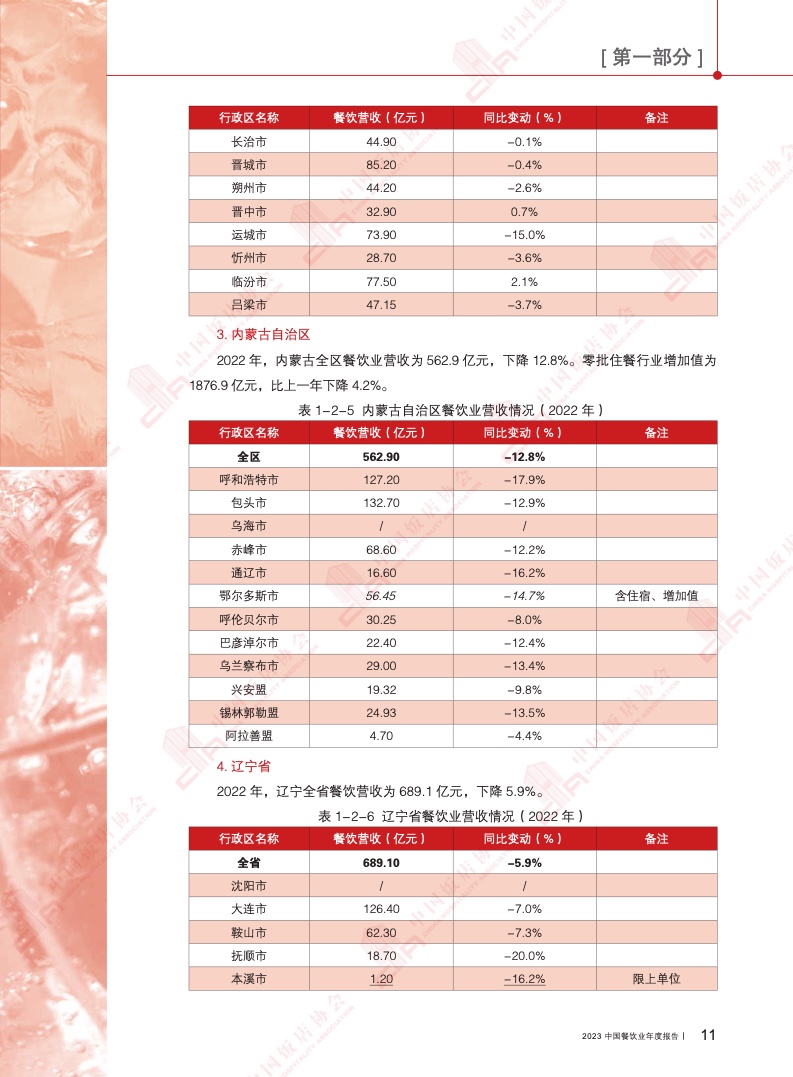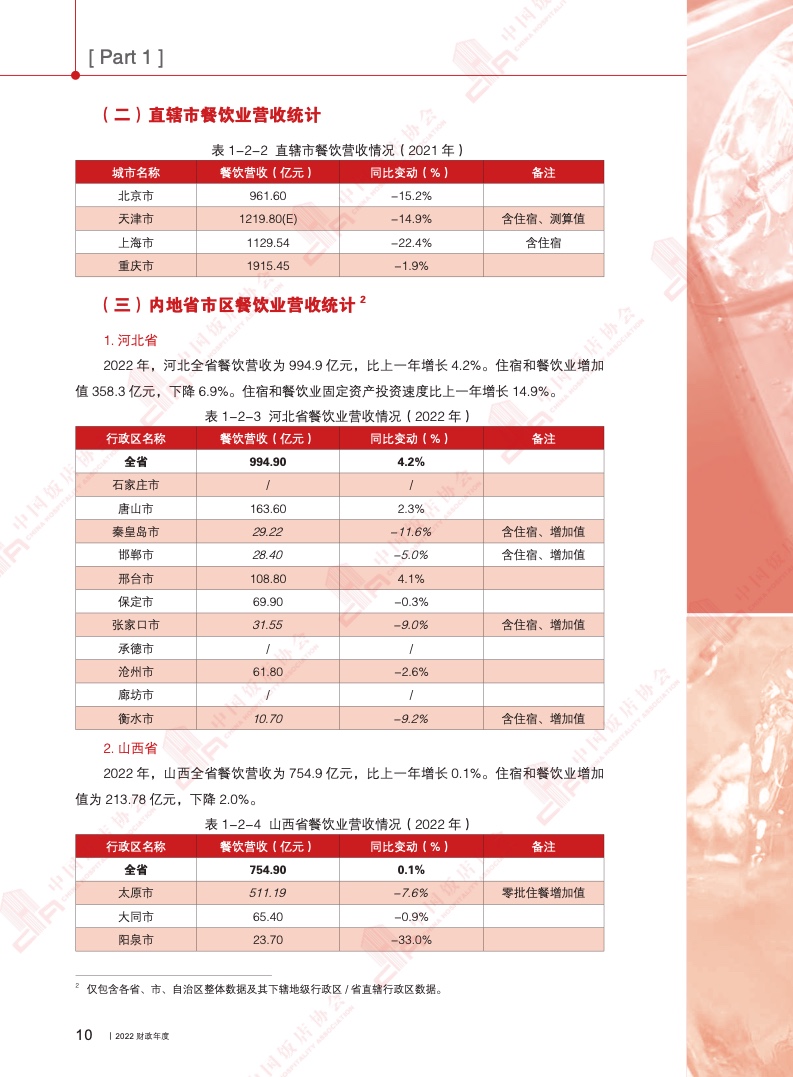2022 年,山西全省餐饮营收为 754.9 亿元,比上一年增长 0.1%。住宿和餐饮业增加 值为 213.78 亿元,下降 2.0%。