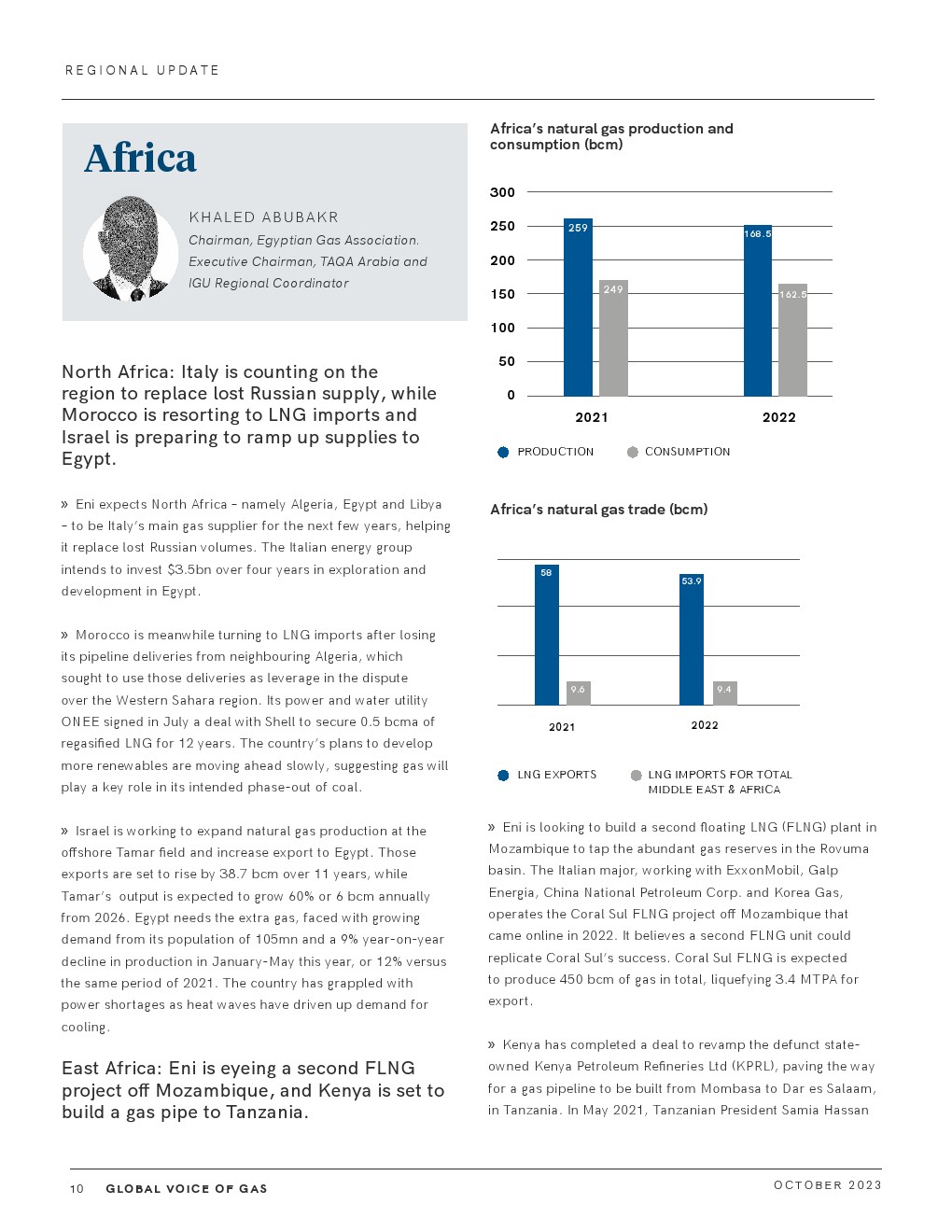 北非:意大利指望该地区取代失去的俄罗斯供应,而摩洛哥则求助于进口液化天然气,以色列正准备增加对埃及的供应。