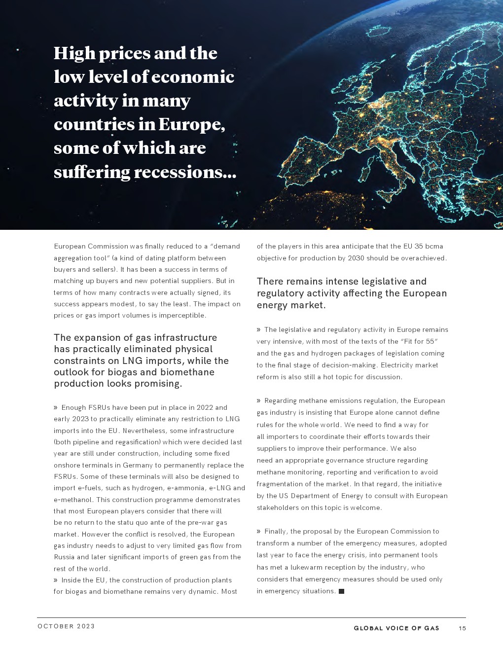 受去年高油价的影响,消费仍然很低。今年签署的长期液化天然气供应合同有所减少。有迹象表明,欧盟委员会联合采购机制的影响并不大。