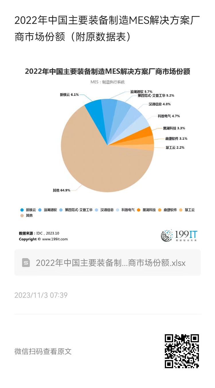 - 2023年中国主要装备制造MES解决方案厂商收入市场份额(附原数据表)