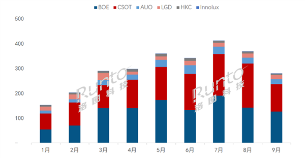 洛图科技表示,台系与韩系的面板厂出货量均呈下降态势。