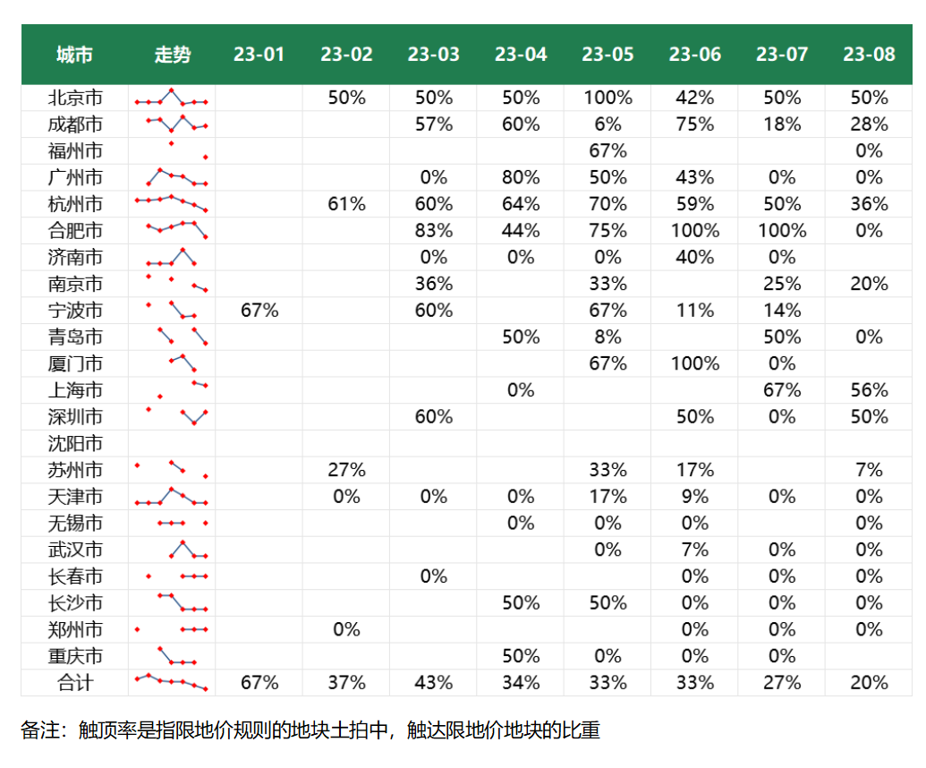 1、本月集中供地数据一览——触达限地价地块比重逐月降低