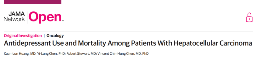 常用抗抑郁药物具有潜在的抗癌作用。一些临床前和流行病学研究报告了三环类抗抑郁药(TCA)、选择性血清素再摄取抑制剂(SSRI)、血清素-去甲肾上腺素再摄取抑制剂(SNRI)等药物在HCC中的潜在治疗效果,但是这些药物与HCC预后的关联尚未得到评估。