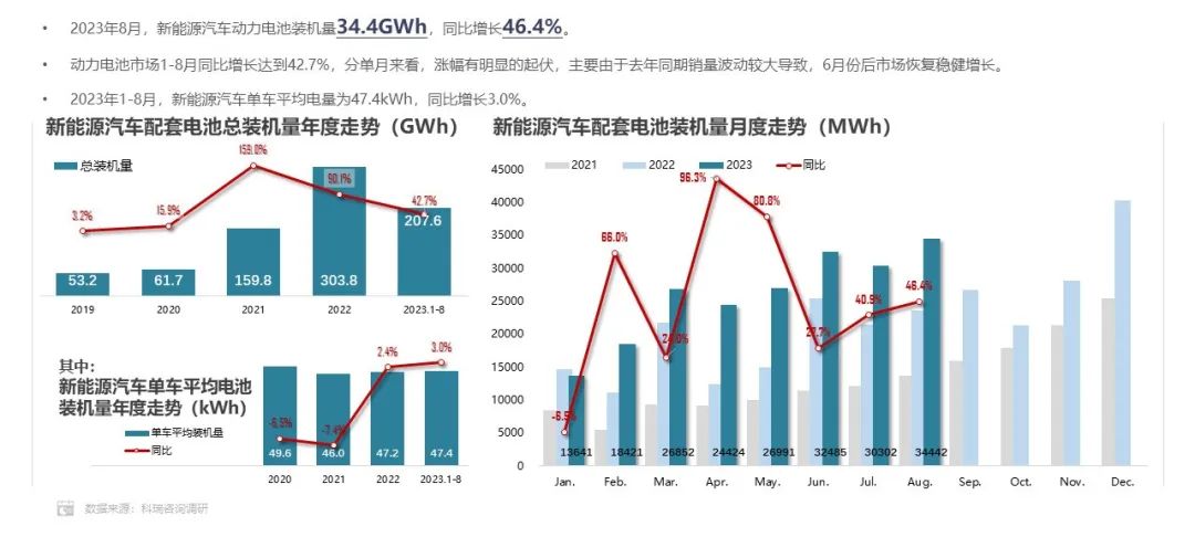 - 8月新能源汽车动力电池装机量较上月增加4.1GWh。