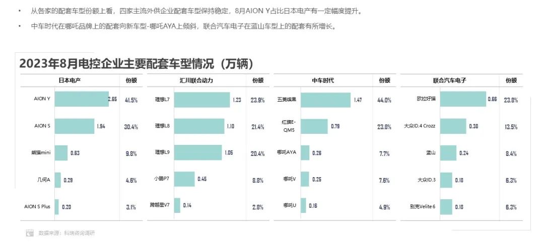 热门车型销量增长带动电机配套量增长,AION Y占日本电产41.5%市场份额。