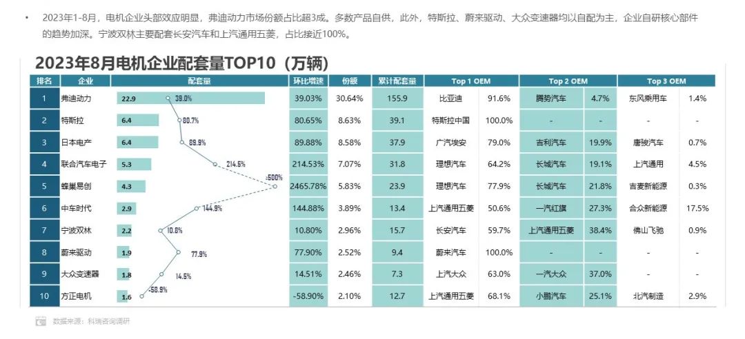 Top10电机配套企业合计配套量超55.7万辆,整体市场配套量同比增长59.7%。