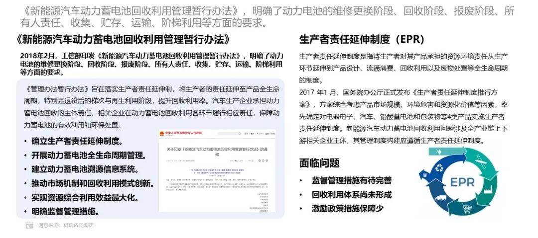 多项行业相关政策及规划推动动力电池回收行业发展。