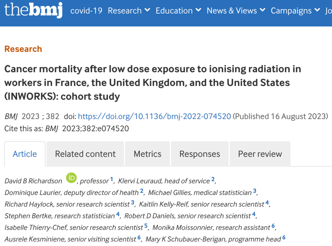 近日,由加州大学尔湾分校David B Richardson领衔的研究团队,研究了国际核工业工人研究(INWORKS)队列超30万人数十年的数据[1],证实慢性低剂量辐射的危害远超预期。