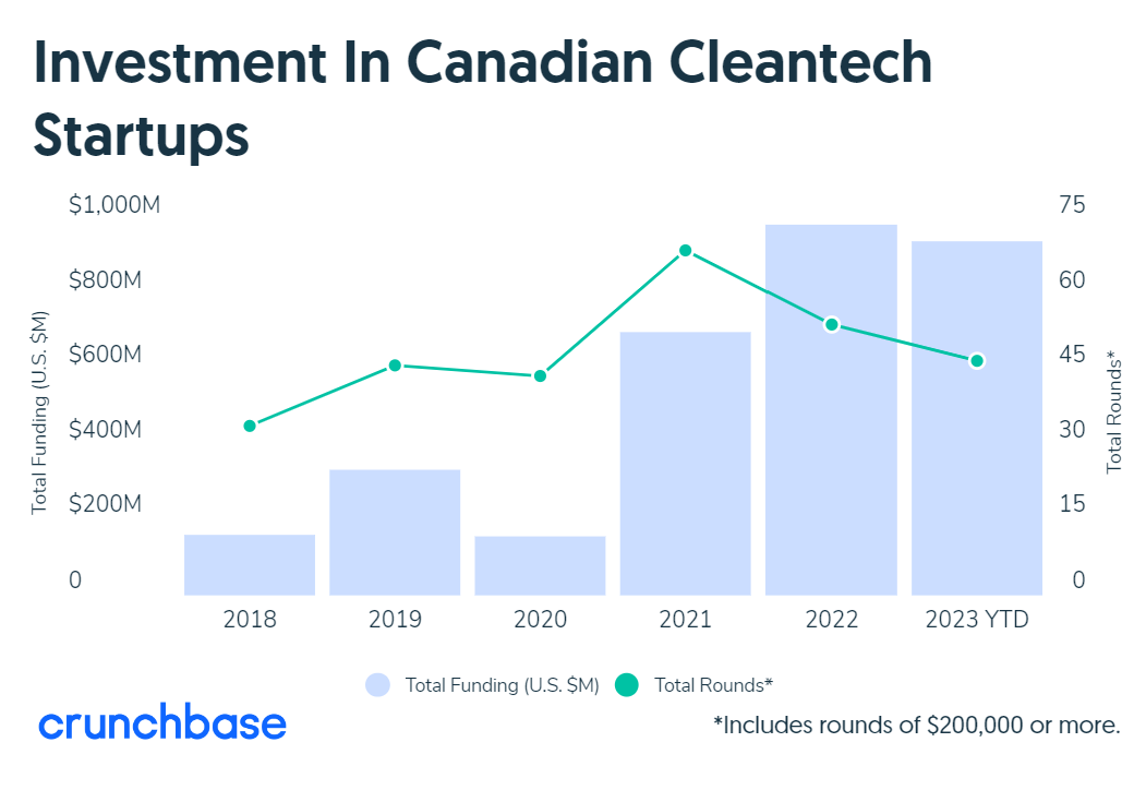 鉴于全球风险投资自2021年达到峰值以来急剧下降,加拿大清洁技术投资的上升势头尤其值得注意。此外,其中一些投资轮明显很大。