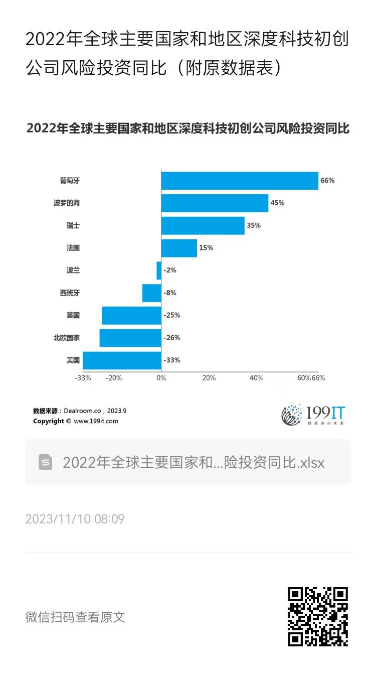 2022年全球主要国家和地区深度科技初创公司风险投资同比(附原数据表) ​​​
