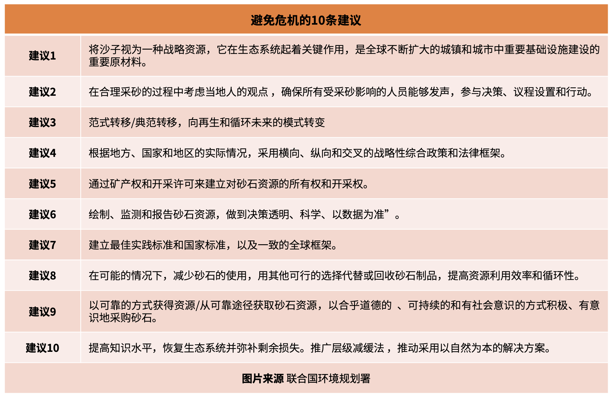 联合国环境规划署表示,要想“合理、可靠、可持续”地管理砂石资源,必须将砂石正式确定为“各级政府和社会的战略资源”,也必须恢复因采砂活动而退化的生态系统。