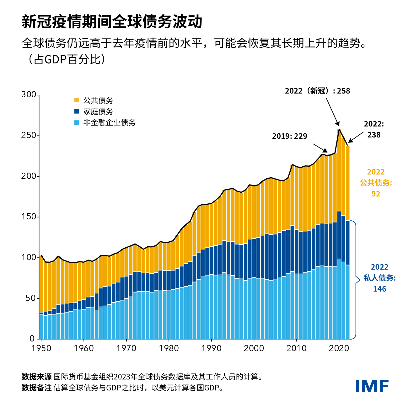 国际货币基金组织(IMF)在其全球债务数据库中报告称,2021年的全球债务达到303万亿美元的新纪录,在2020年的226万亿美元的全球债务纪录的基础上进一步增长。据国际货币基金组织称,这是第二次世界大战以来最大的一次全球债务年增长。