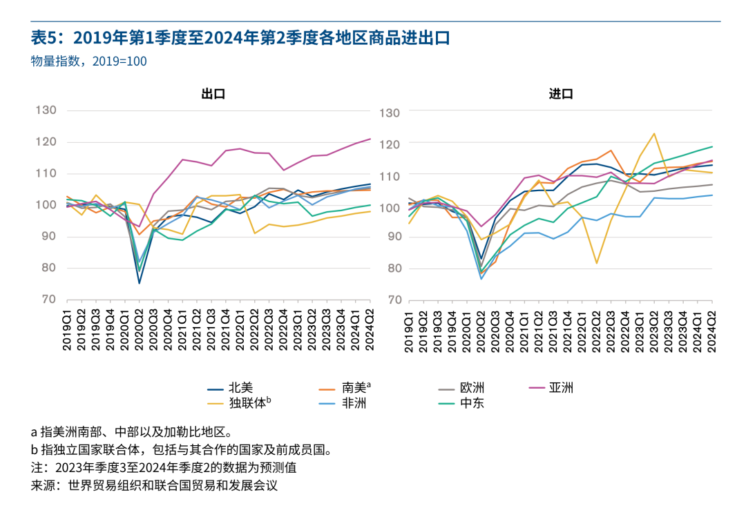 世界经济论坛《首席经济学家展望》指出,社会各界对经济前景在短期内改善不抱太大期望。预计2024年亚洲将实现最快的进出口增长。