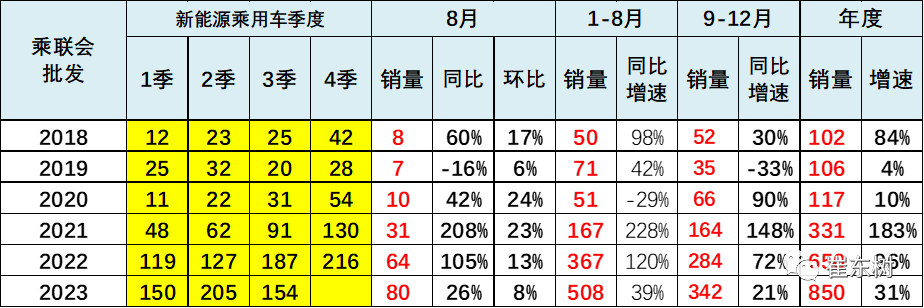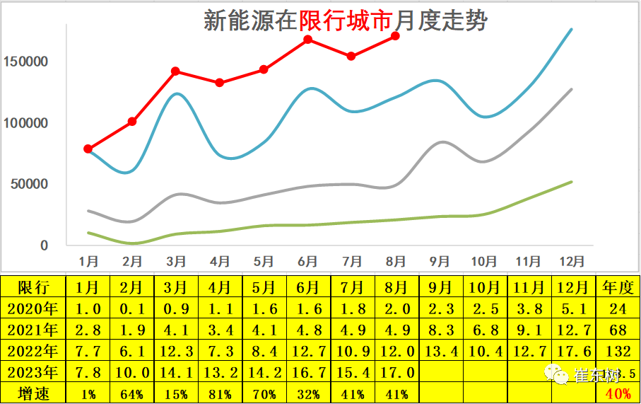 新能源车在限行城市的表现相对较强,2023 年 8 月份达到 17 万台水平,同比增长速度达到 41% 的较好水平。