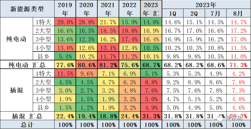 相对燃油车逐步向低县级市场延伸,新能源车的步伐更快,尤其是非限购的大型城市的新能源车销量占比已经达到较高份额。县乡市场的插混车型也是逐步扩展,未来潜力较大。