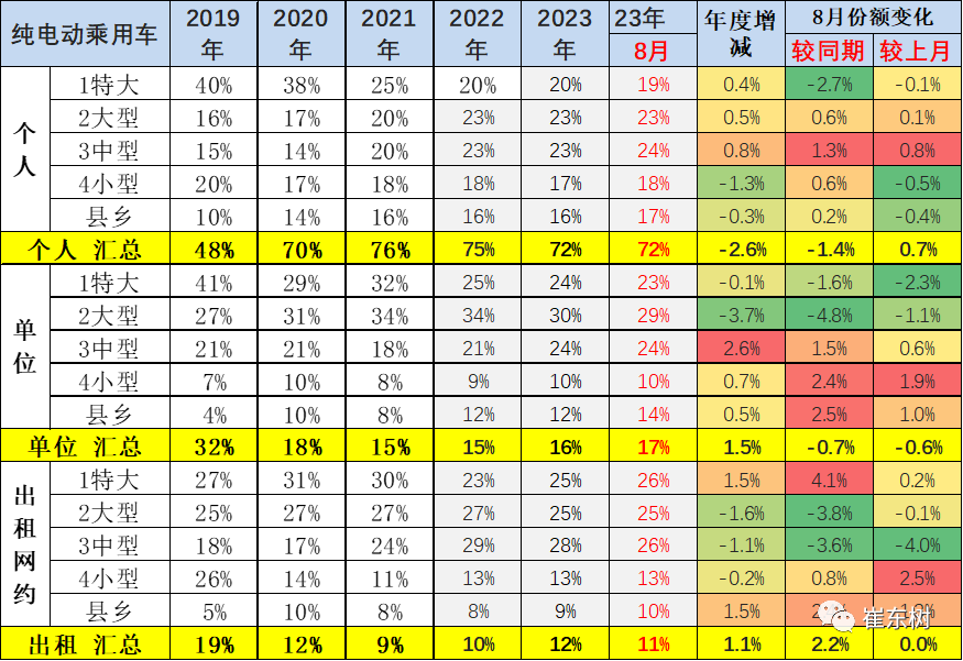 纯电动私人家用市场的逐步启动推动行业发展。今年限购大城市需求虽然很强,但占比逐步下降,大中型限行城市市场占比持续回升,小城市和县乡市场私人消费市场回升较慢。
