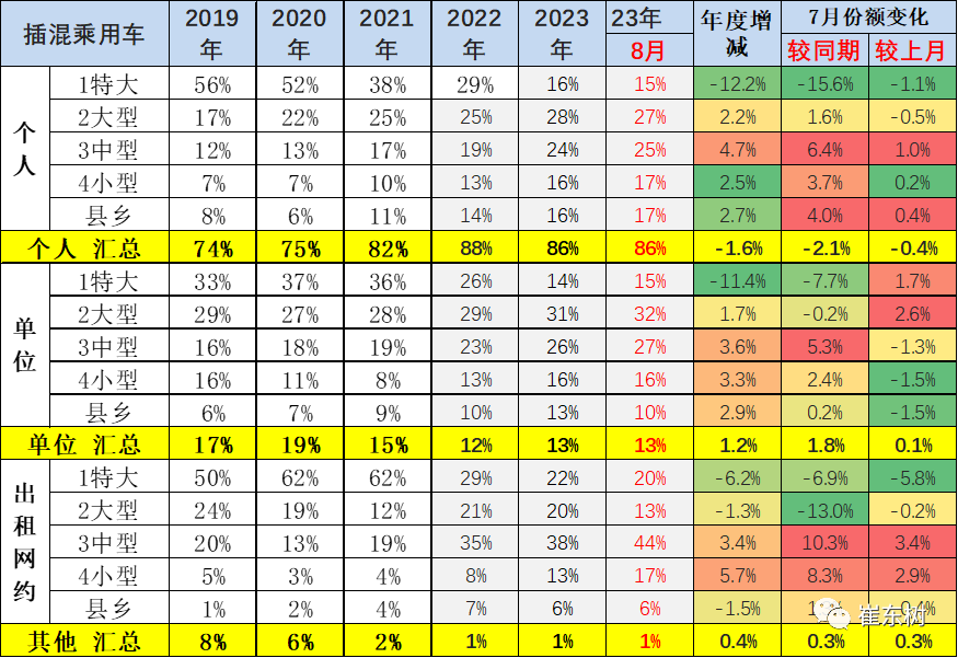 由于比亚迪之外的插混市场主要是増程式,合资车企的私人插混表现相对偏弱。