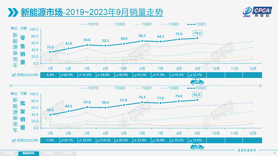 因国庆中秋双节的8天假日前移占用9月份2天的关系,10月有19个工作日,较2022年10月多1个工作日,有利于车市产销增量。由于受环境影响去年10月的乘用车零售仅184万辆,低于2022年8月零售187万辆的销量,季节消费规律异常,因此今年10月和11月的零售同比增长潜力较大。