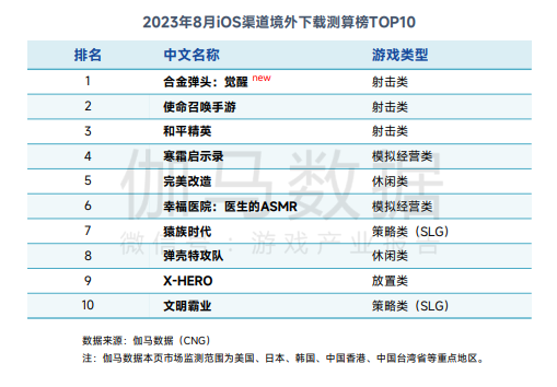 出海:自研海外市场收入微降,《合金弹头:觉醒》拿下8月境外iOS下载榜第1