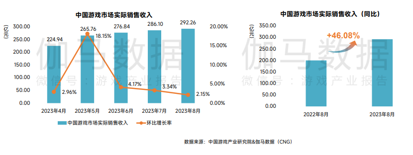 近日,伽马数据发布了《2023年8月游戏产业报告》(以下简称“报告”),国内游戏市场规模增幅再次扩大。
