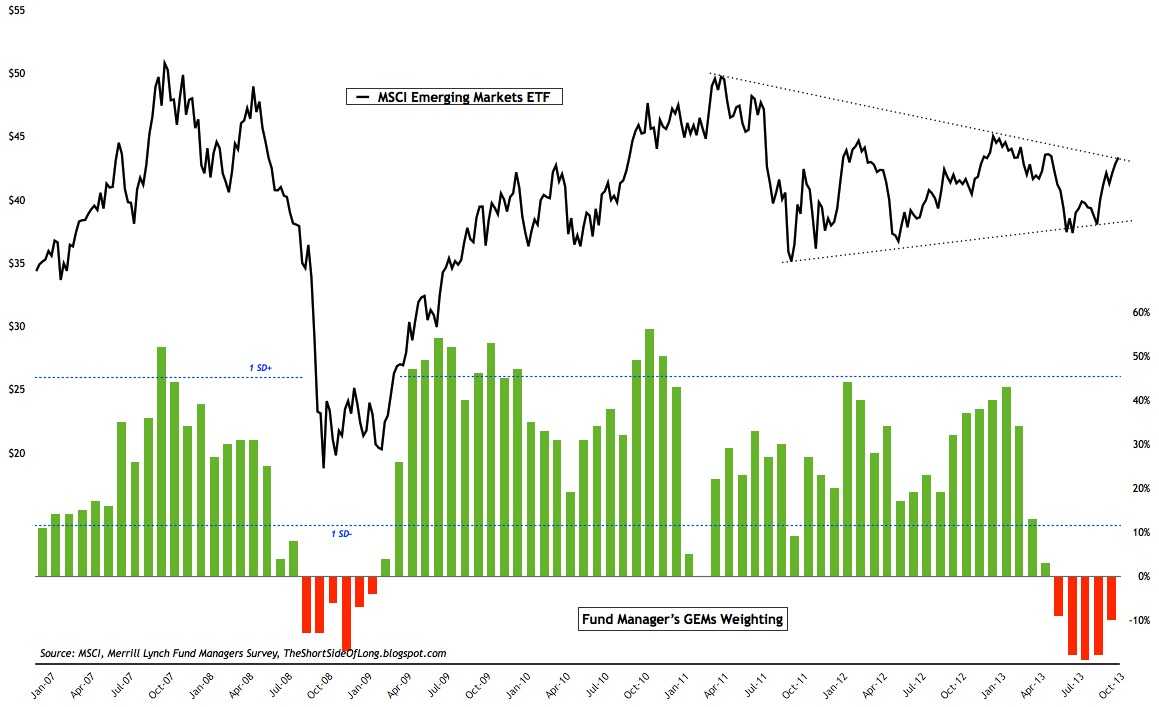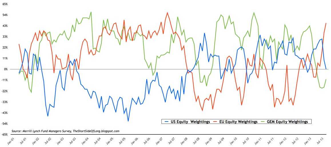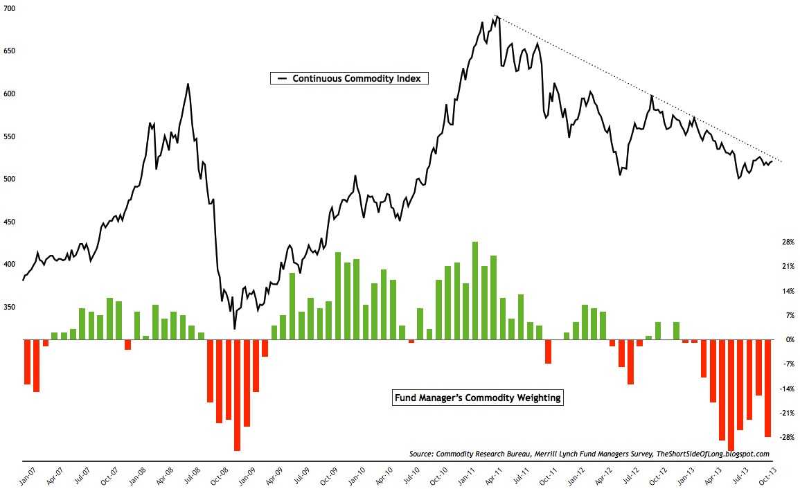 基金经理们依旧严重看空大宗商品,低配比例今年6月份曾达到32%的纪录高位,目前仍高达28%(为美林调查史上第四高水平)。