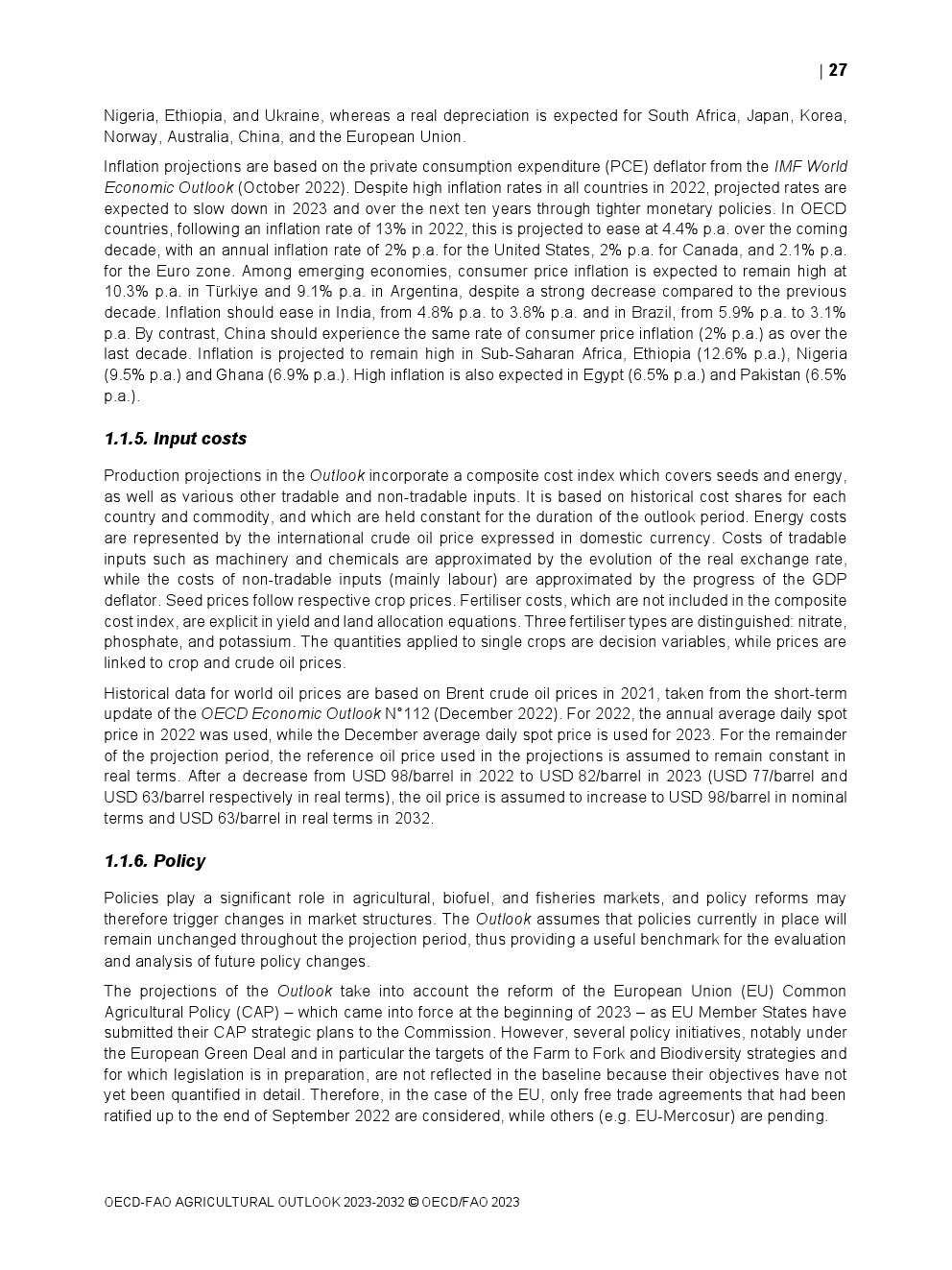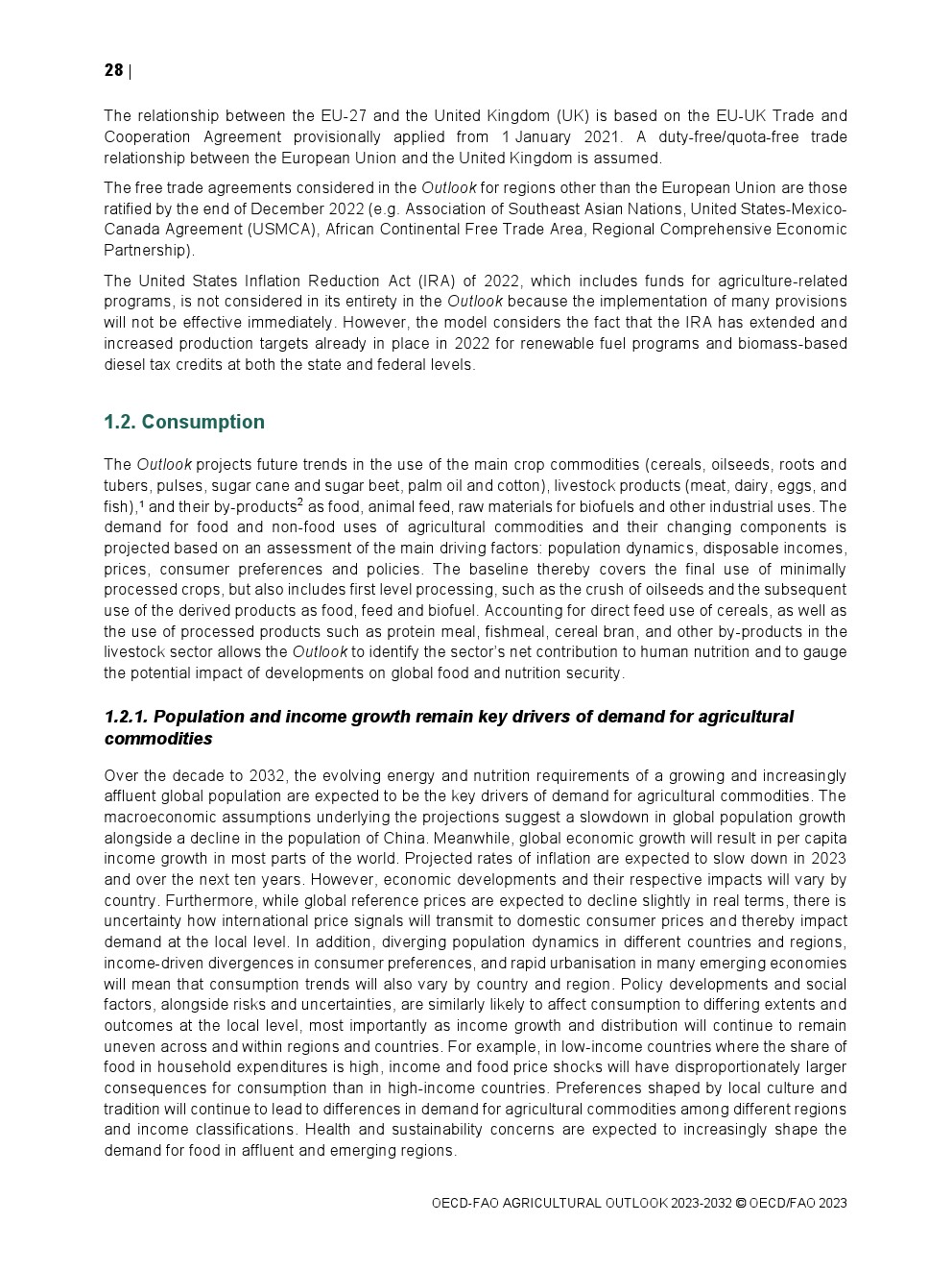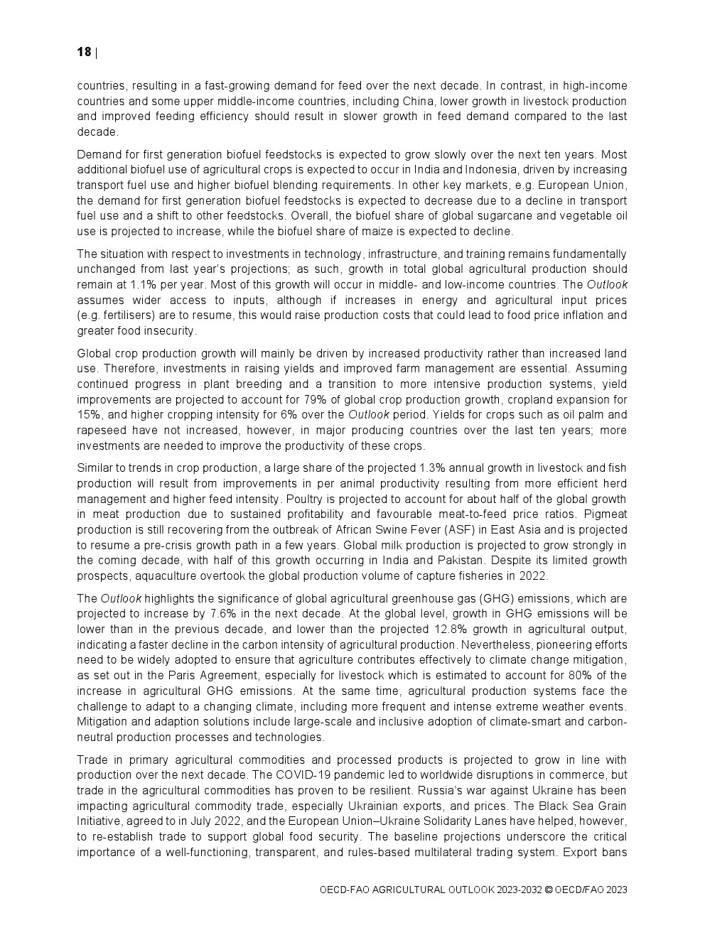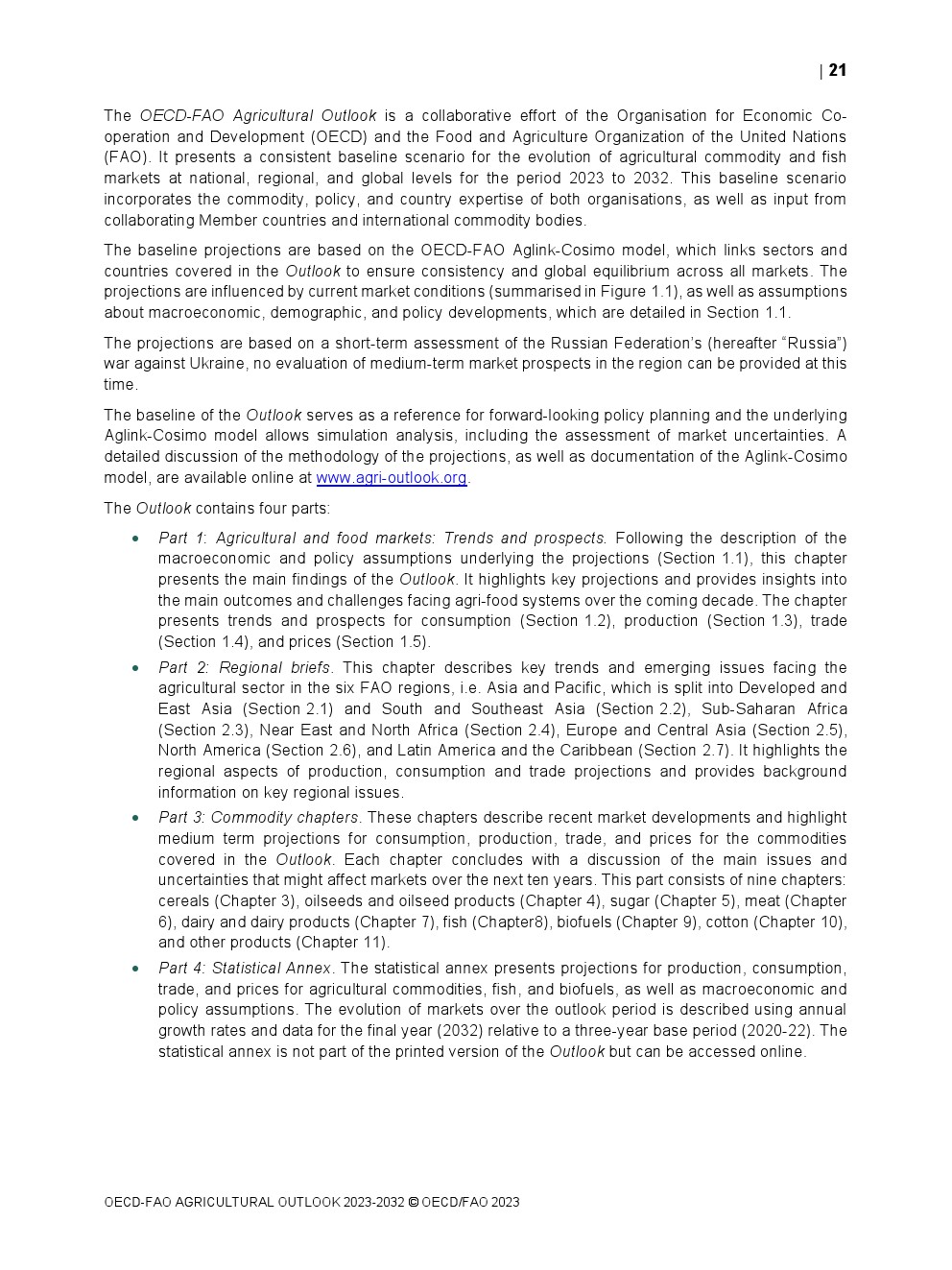经合组织发布了“2023-2032年农业展望”,评估了在经济风险、不确定性和高能源价格持续存在的背景下,国家、区域和全球各级农产品和鱼类市场的十年前景。该报告是经合组织与粮农组织之间的合作成果,根据成员国和国际商品组织的投入编写。