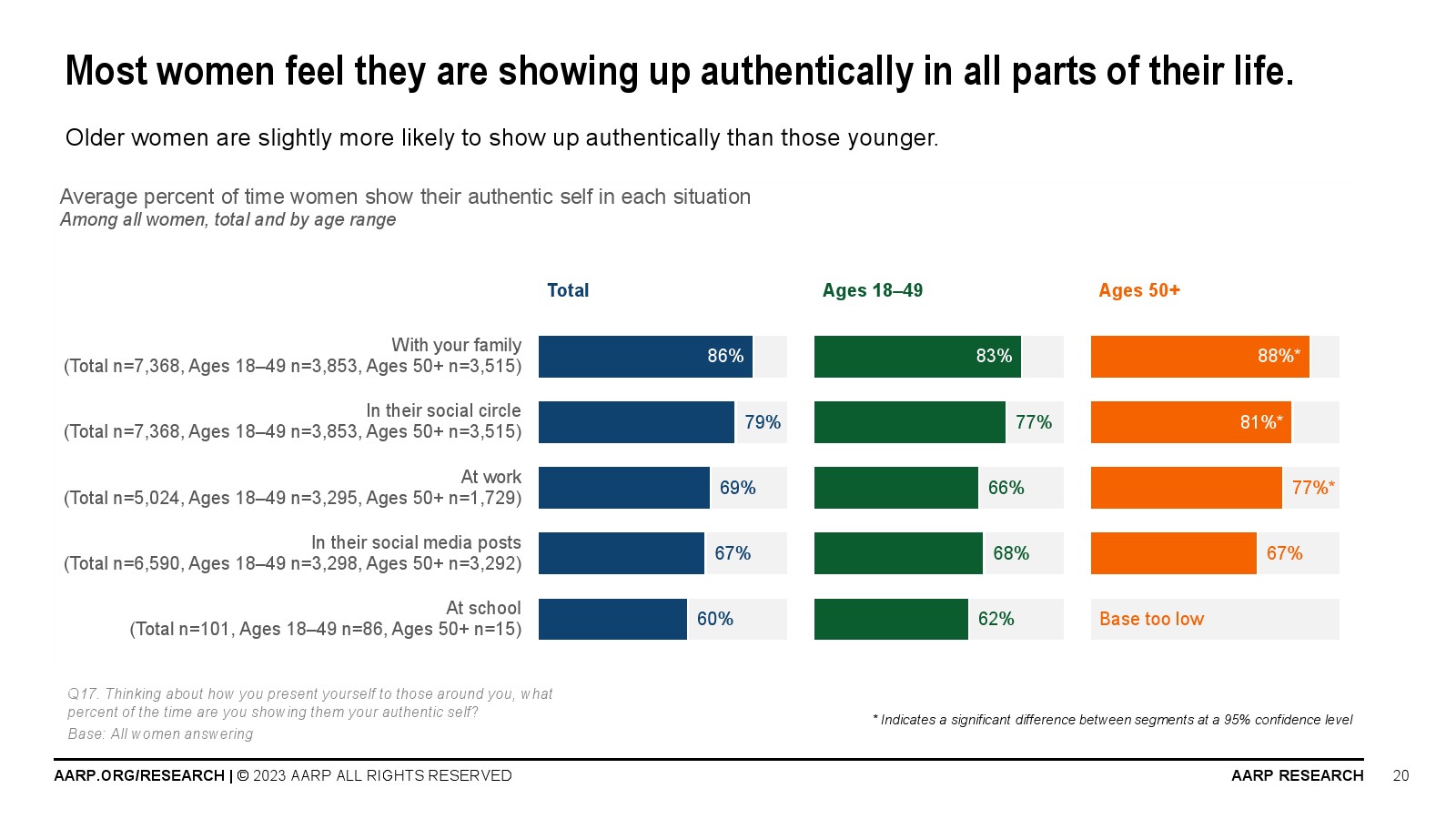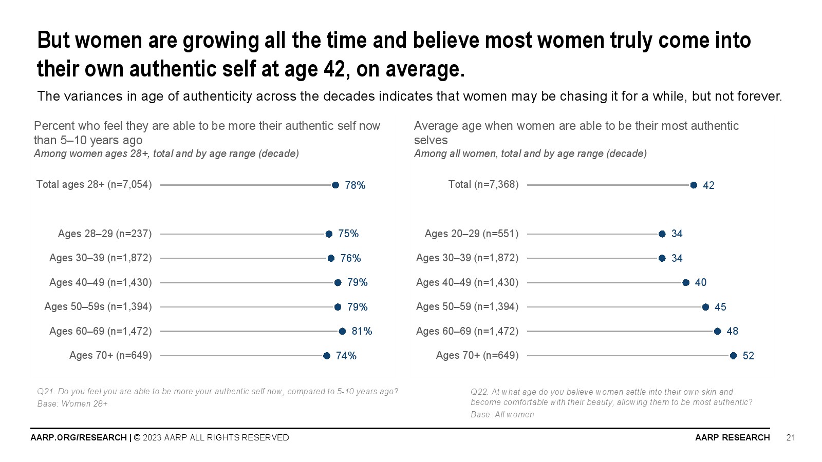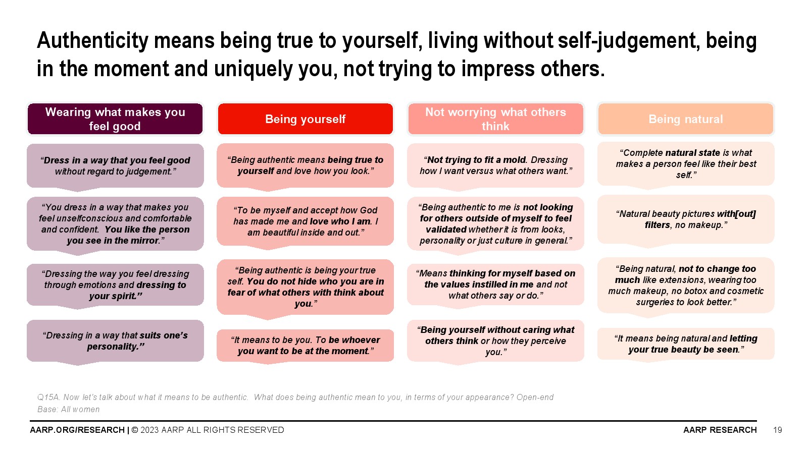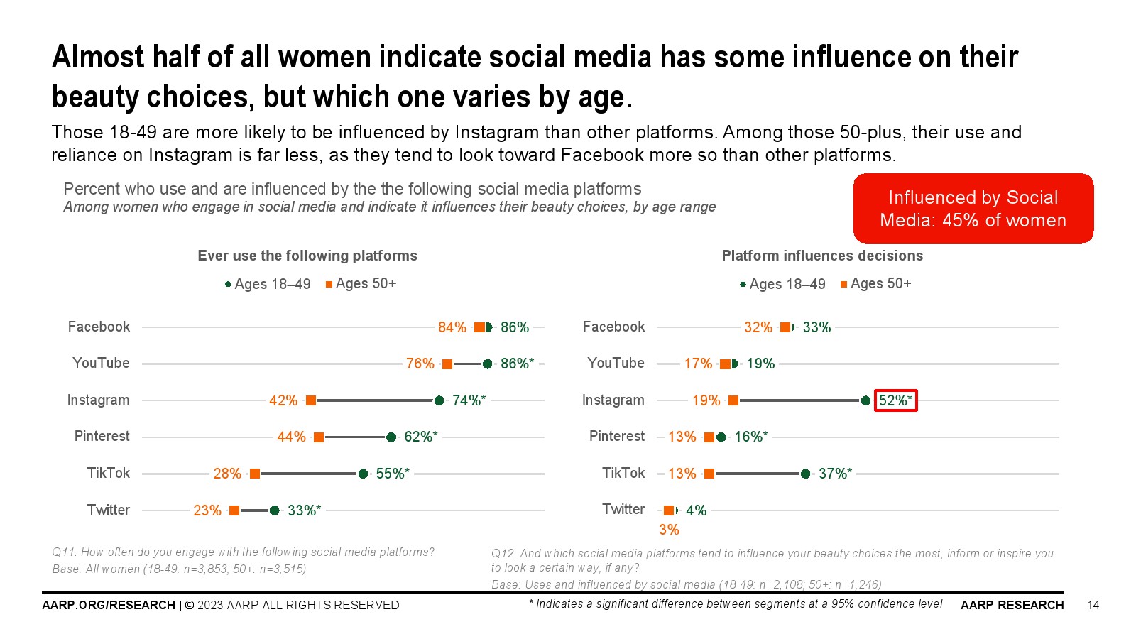 美国退休人员协会(AARP)的一份报告显示,年龄在18-49岁之间的美国女性中有77%认为,女性在媒体上的真实形象有些或非常重要;50岁及以上的女性中有71%的人持同样观点。