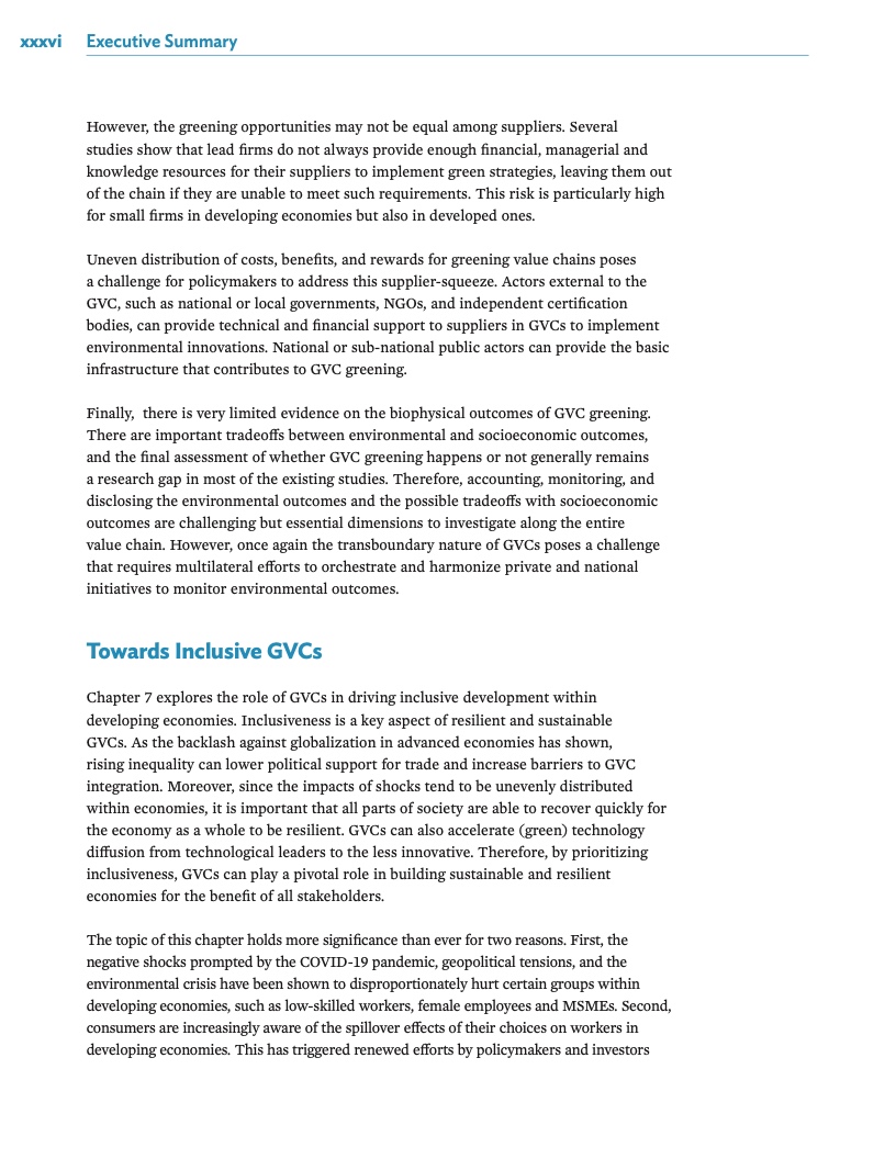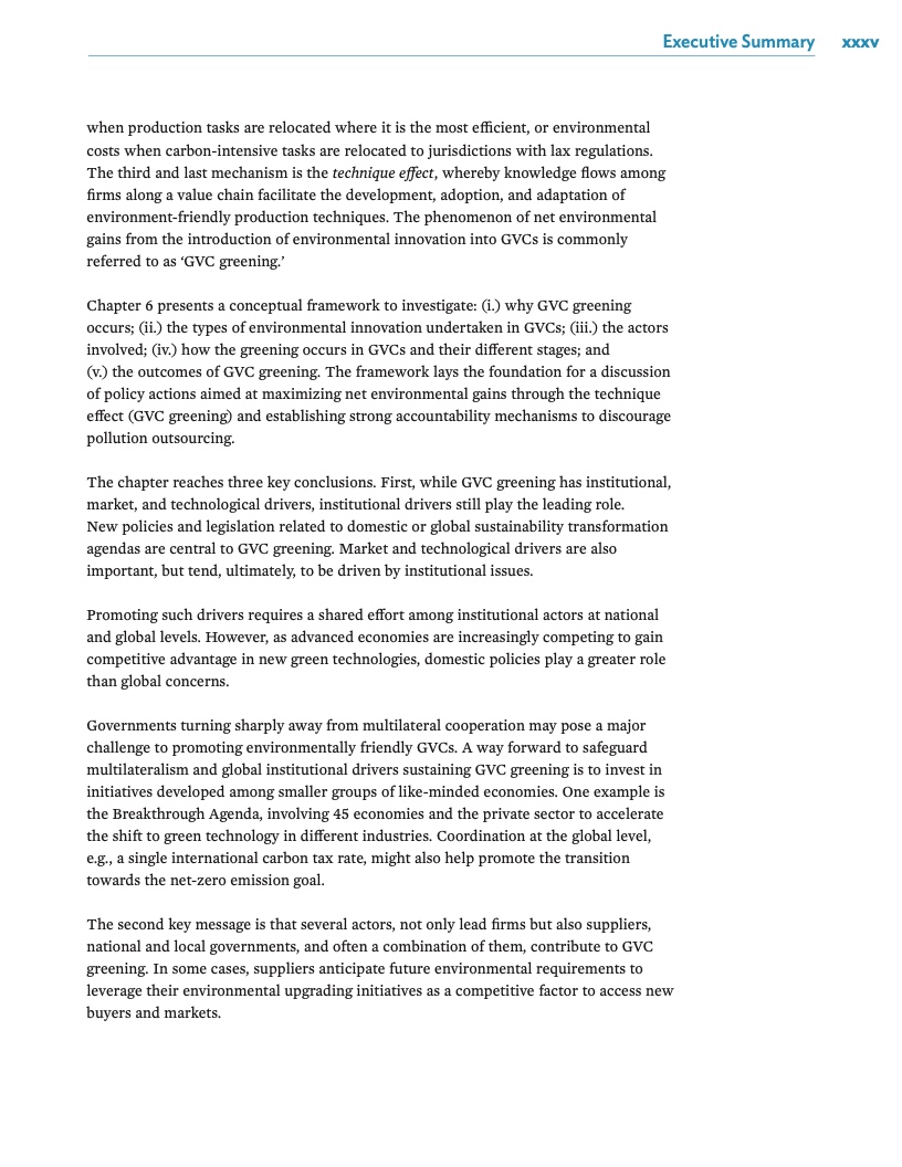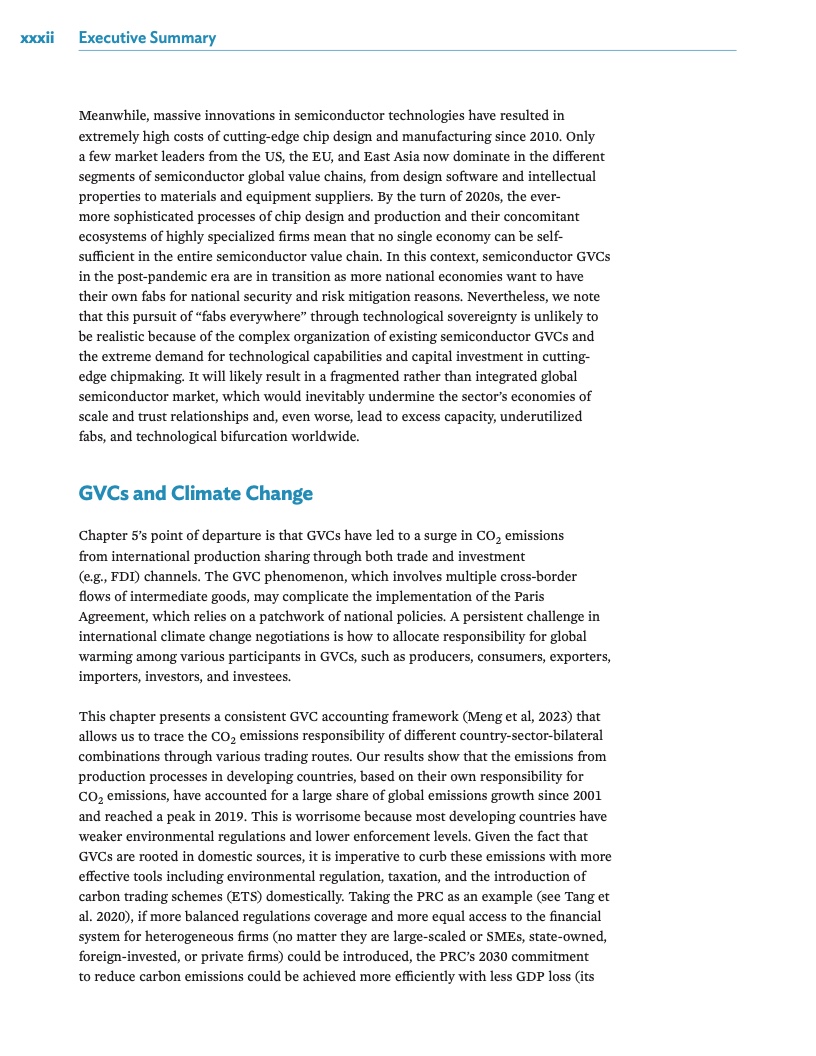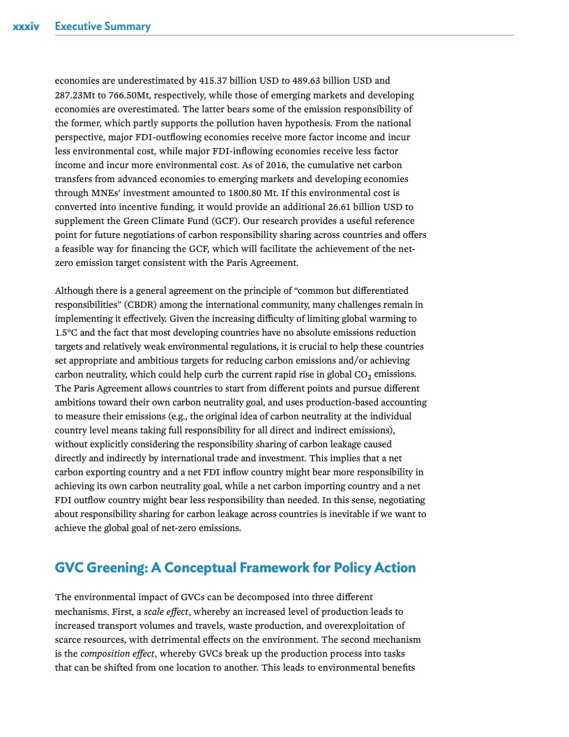 在可持续发展方面,报告提供了一个全面的碳排放核算框架,可追溯全球价值链上的温室气体排放,并提出了一个概念框架,以帮助全球价值链更加环保。