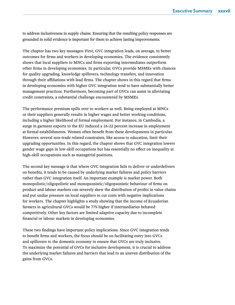 他们补充说:“没有包容性,就不可能实现复原力和可持续性。为确保全球价值链支持包容性发展,必须继续降低一体化壁垒,并采取措施防止企业利用其市场力量损害小型供应商的利益。”